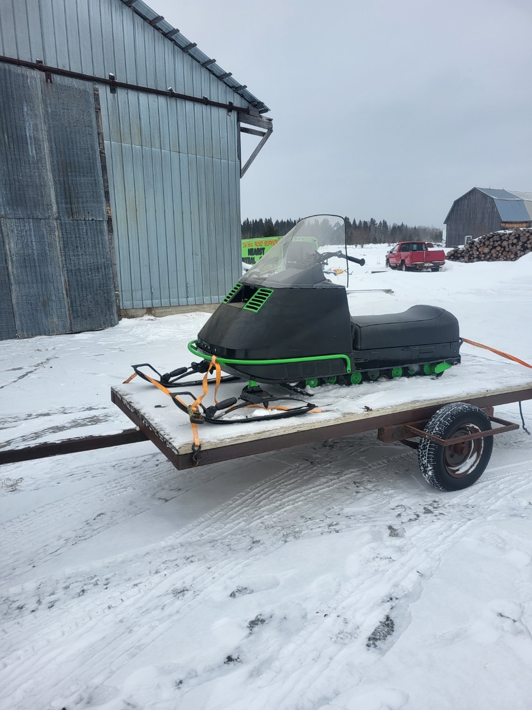 This was an Elan, Bombardier's smallest sled in the '70's.My bravo is vintage enough for me, I could've got my hands on a old Olympic 300 the other day but it was not the original paint and how many sled do one guy need so I let it pass... they are fun but only once the trail had been done. One of my buddy do a vintage sled rally every year, its a lot of fun but again I get pretty much the same feeling with my bravo plus it can drive through the snow easier.