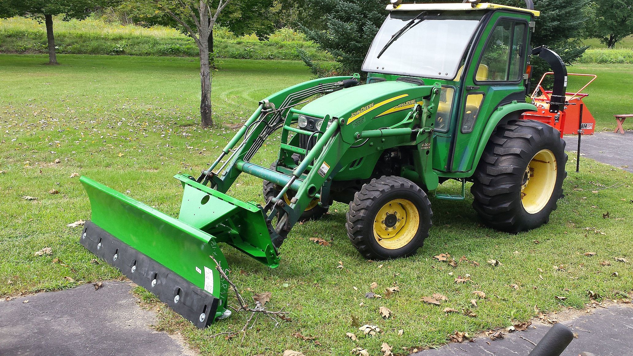 I bought a Frontier (Deere) front blade that mounts to the loader (QA bucket comes off, blade goes on. It works well if the snow is cleared before it freezes...after freezing, the blade trips pretty frequently.