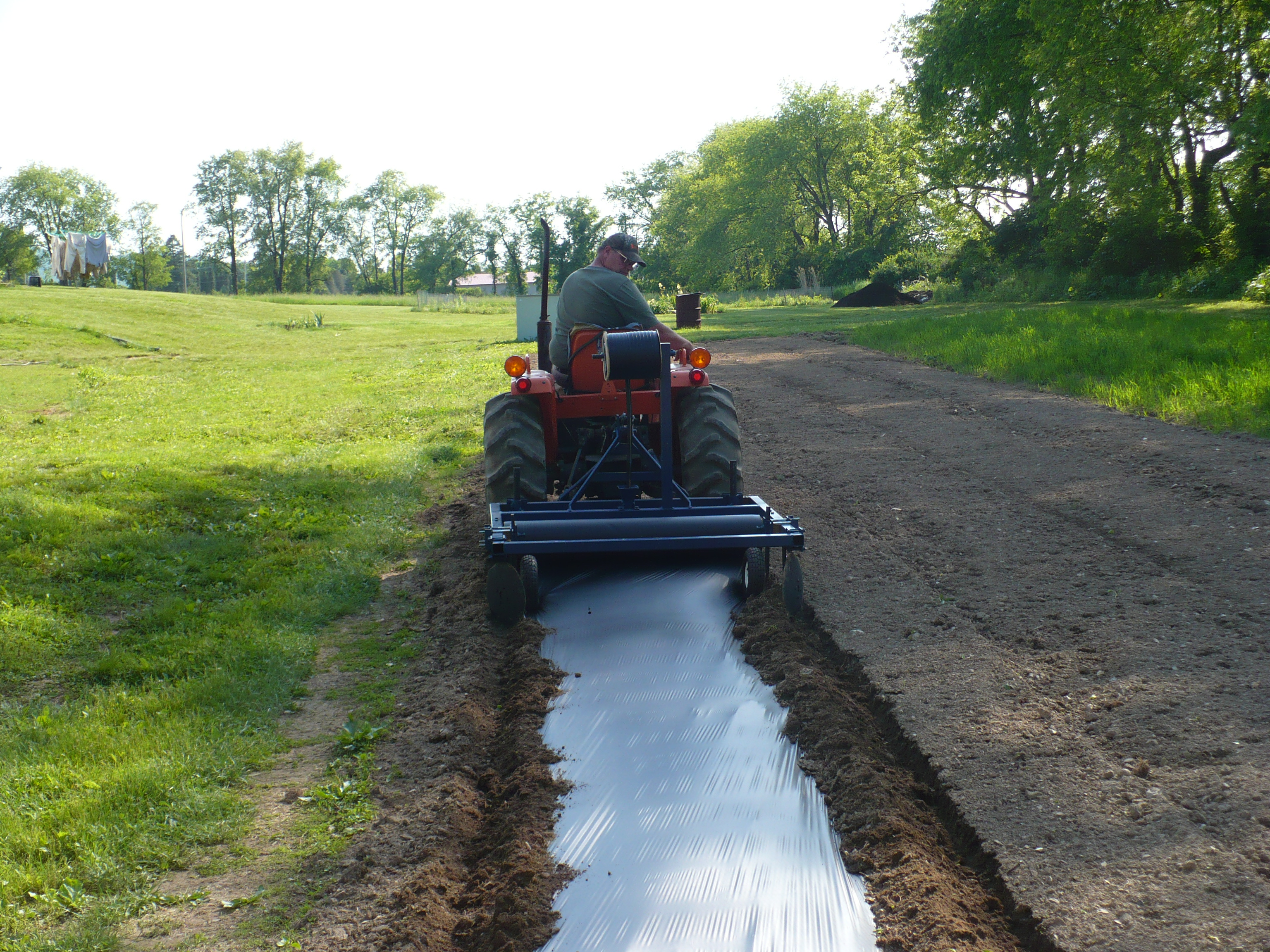 I lay all my plastic at once so I can free up the tractor for other things. I cut slots about 2 feet long and skip a foot to seed. I soak the beans for a few hours before I plant and plant by hand. I've gotten better stands since I started that. I still have to weed the seed slot, but it's a lot less area to take care of.