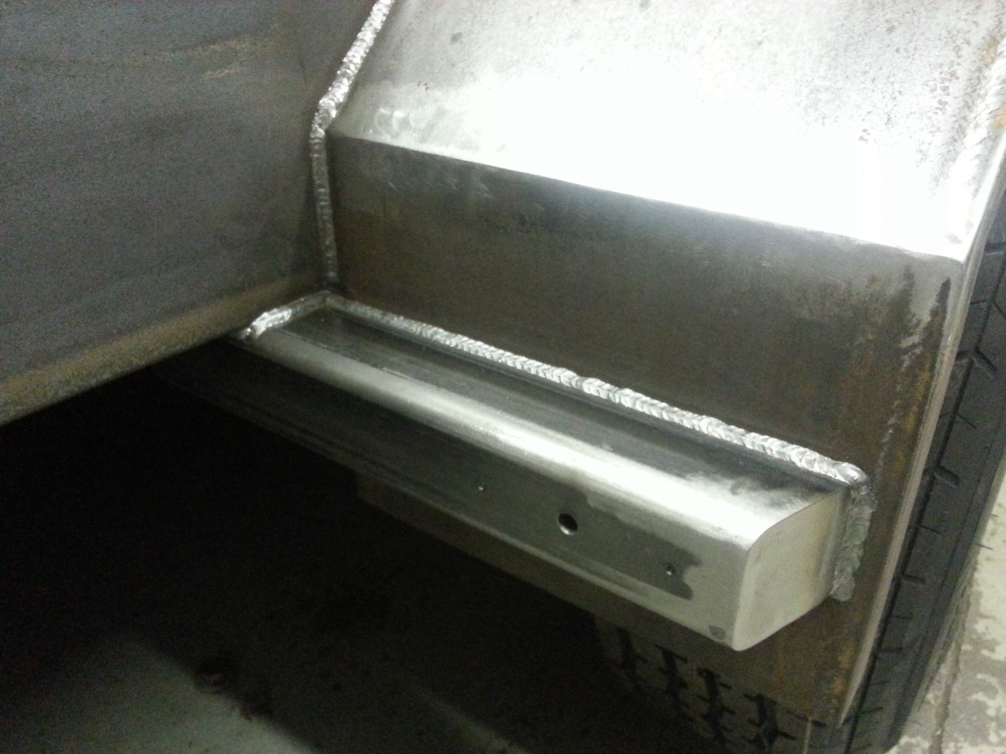 Braces for the fenders. I went ahead and drilled and tapped for running lights before I welded them on. I kinda liked the look better without them, but I know they'll make them a lot stronger.