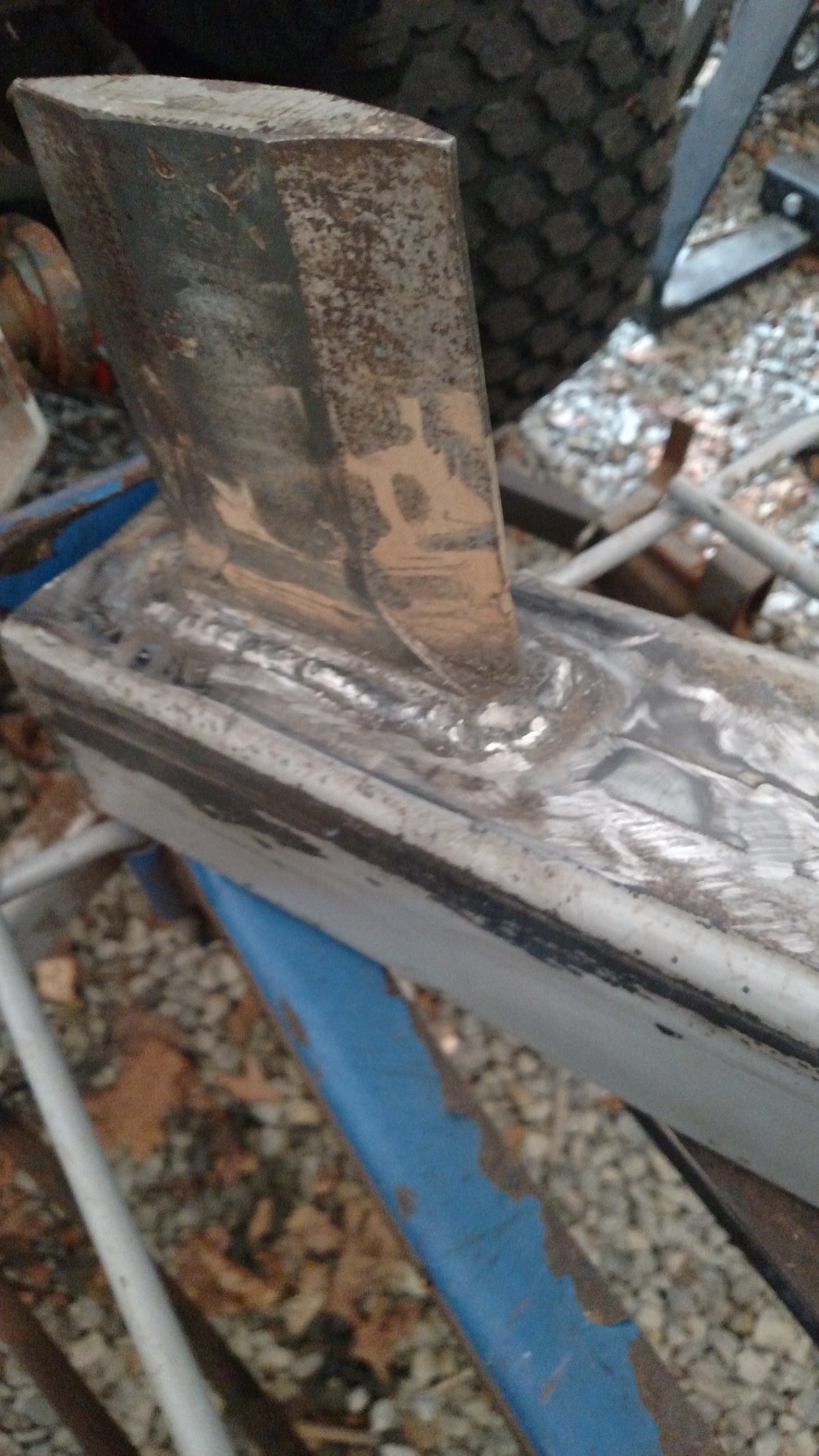 Congrats on fixing it! You have somewhat less than 7 yrs until your next fix. Look at the failure - it tore out the beam, not the weld. The beam (box tube) is not beefy enough for this. It will tear again. Probably sooner than the first time. The beam style is not correct for a splitter. You can fix it like you did, or really fix it for good. But the real fix will take a lot more time. My $0.02...