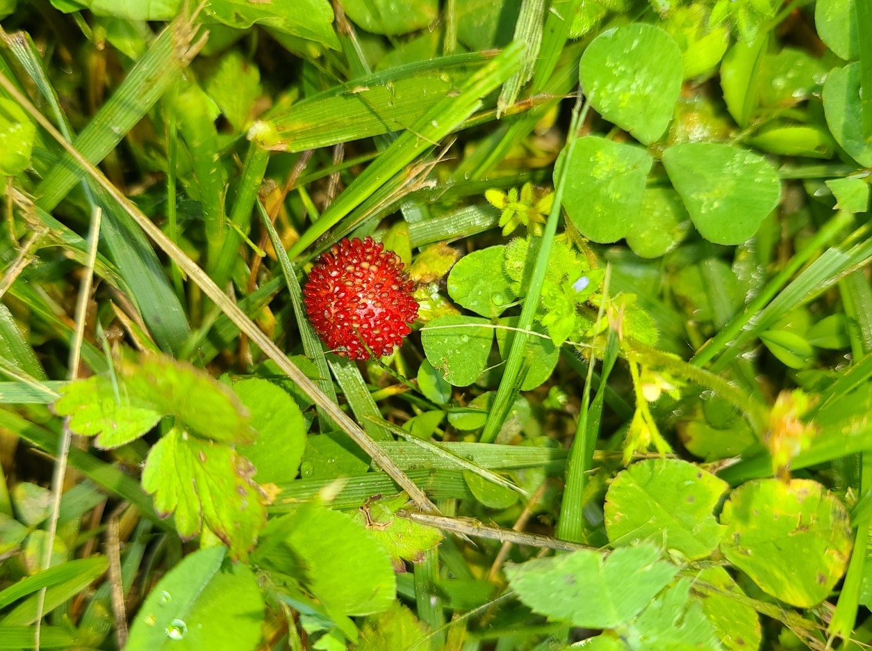 Wild Strawberry, used to use them to make pie, otherwise blandish fibery strawberry taste.