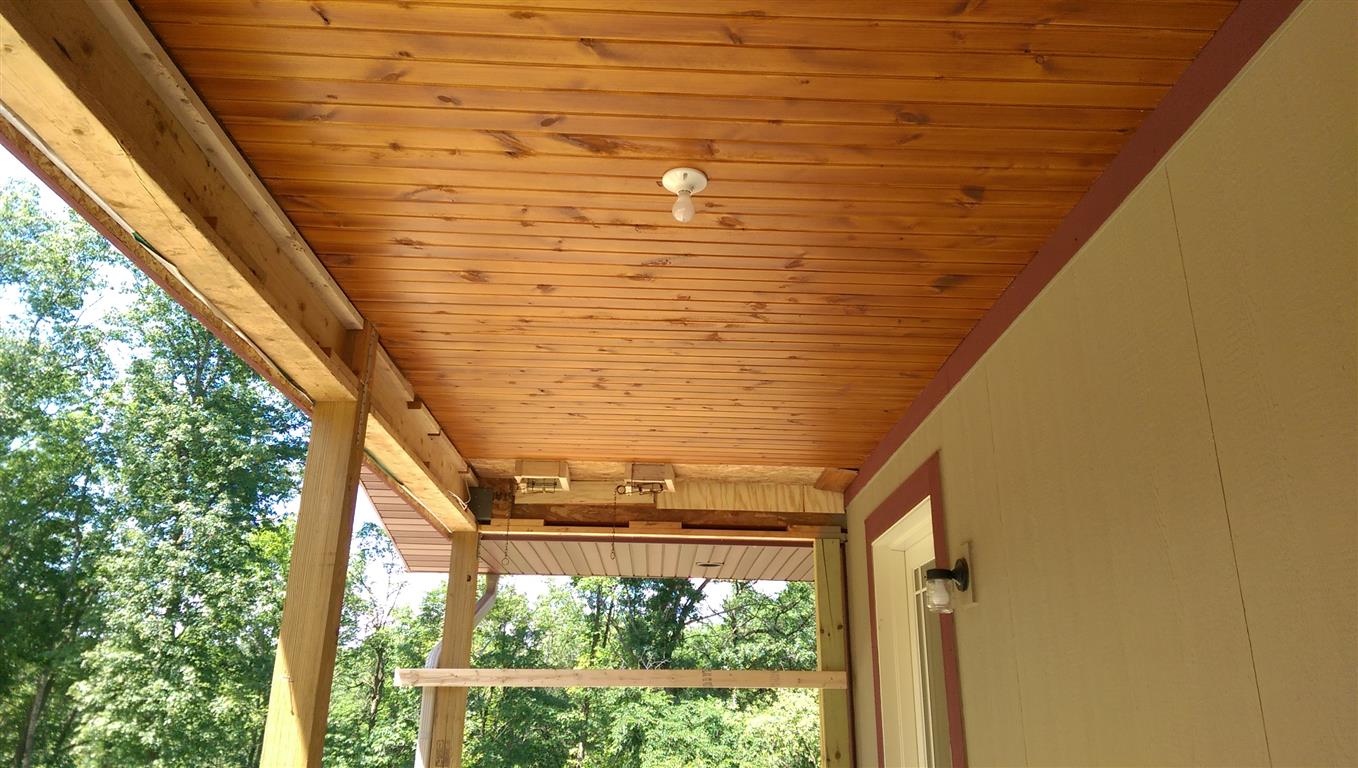 Really like your ceiling. The wife has been after me for years for a covered deck. I just don't know how I would tie it in to the house as we have a metal roof.