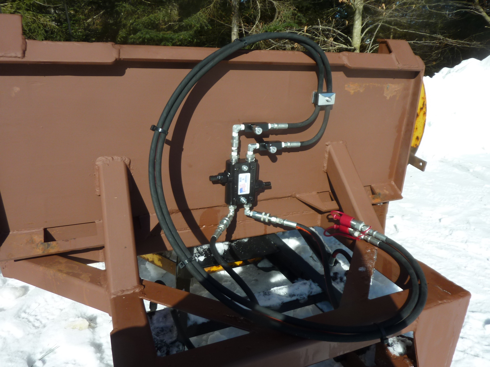 Gordon,amhicks21 is right. If you have electric 3rd function valves (full on/off) you will want restrictors or your plow will really slam on angling. I used 0 to 5 gpm needle valves from Surplus Center. They work well on my M5640 tractor. I also used a cross over relief valve for SC. Plow cylinders had a warning not to exceed 2500 psi all over them. My tractor runs at 2800 plus when you push into a solid bank or hit something you will want hydraulic relief to protect the cylinders.