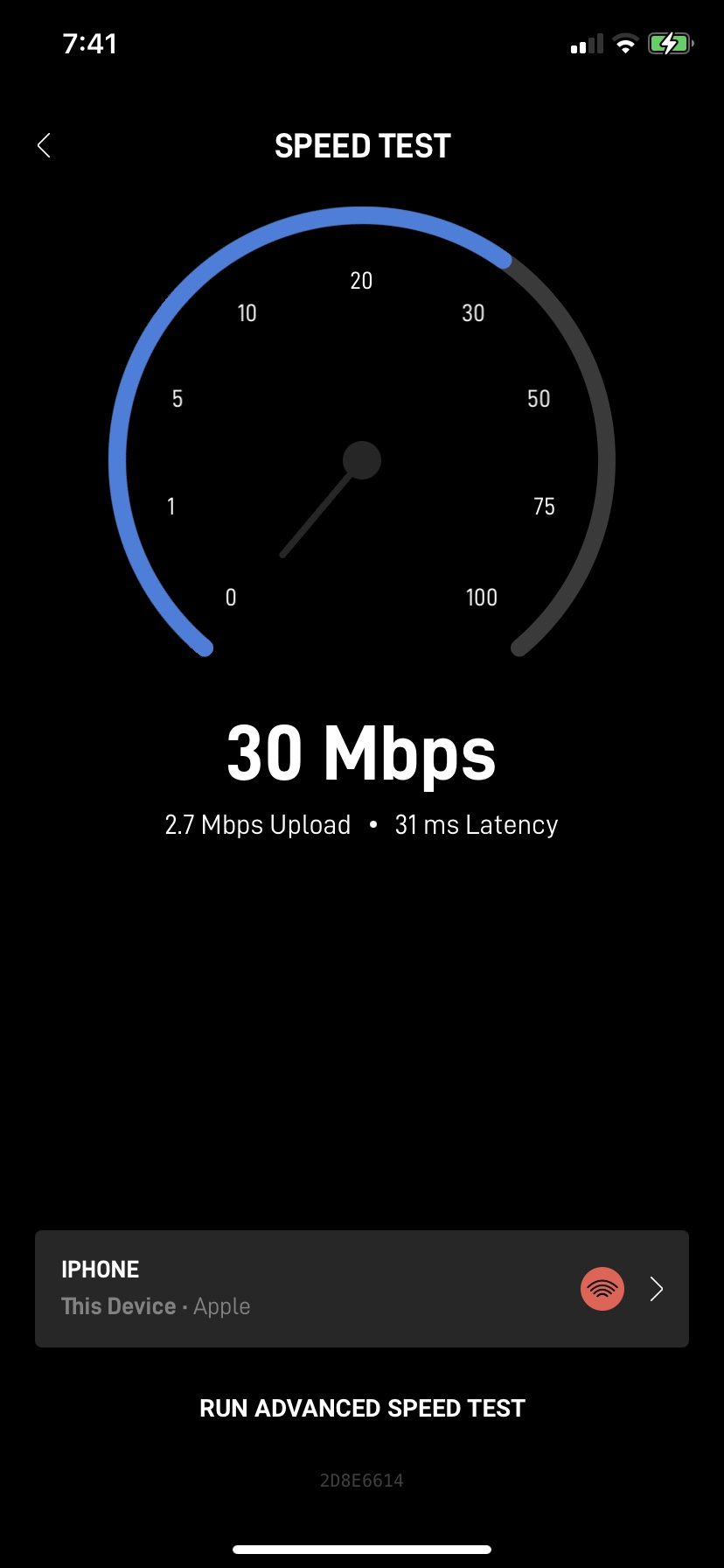 My normal speed test showed 30 Mbps, then it gives you the advanced option. I got 131Mbps to router and 99 Mbps to my phone. Wonder why the difference. View attachment 785909