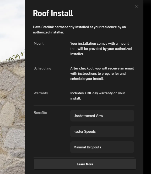 Are you sure that is actually Starlink and not some 3rd party reseller/installer you're looking at? Starlink itself doesn't do installations.
