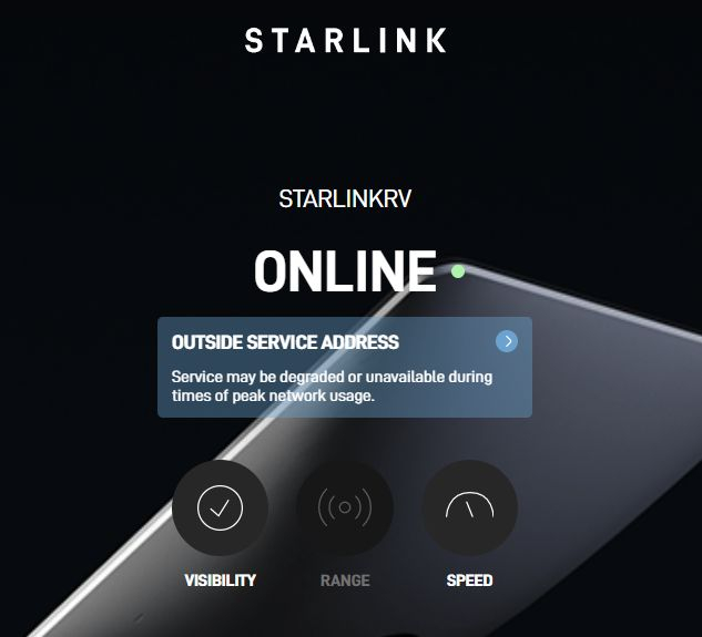 And ... drum roll ... I saw a message just now regarding "peak usage." It was advertised that the system speed might slow down on "RV" systems during peak usage. But the phone app message says it could also become "unavailable." Hmmm.