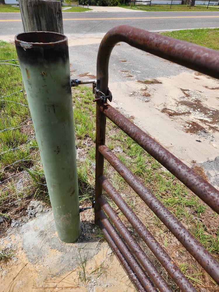 I had a 6-7" diameter wood gate post, 8 ft long, 54" out of ground, 42" in ground, with 2 60# bags of concrete, that was allowing my 16 ft gate to sag. Got a 6'6" piece of high pressure 8" steel Gas main pipe; 4-#5 rebar, and 8-60# bags of quikcrete. Welded gate hinges to pipe after pouring footer, with the rebar going from 4 corners into pipe. Hopefully this solves the saggy gate issue. Still need to fill pipe with concrete, but that can come later.