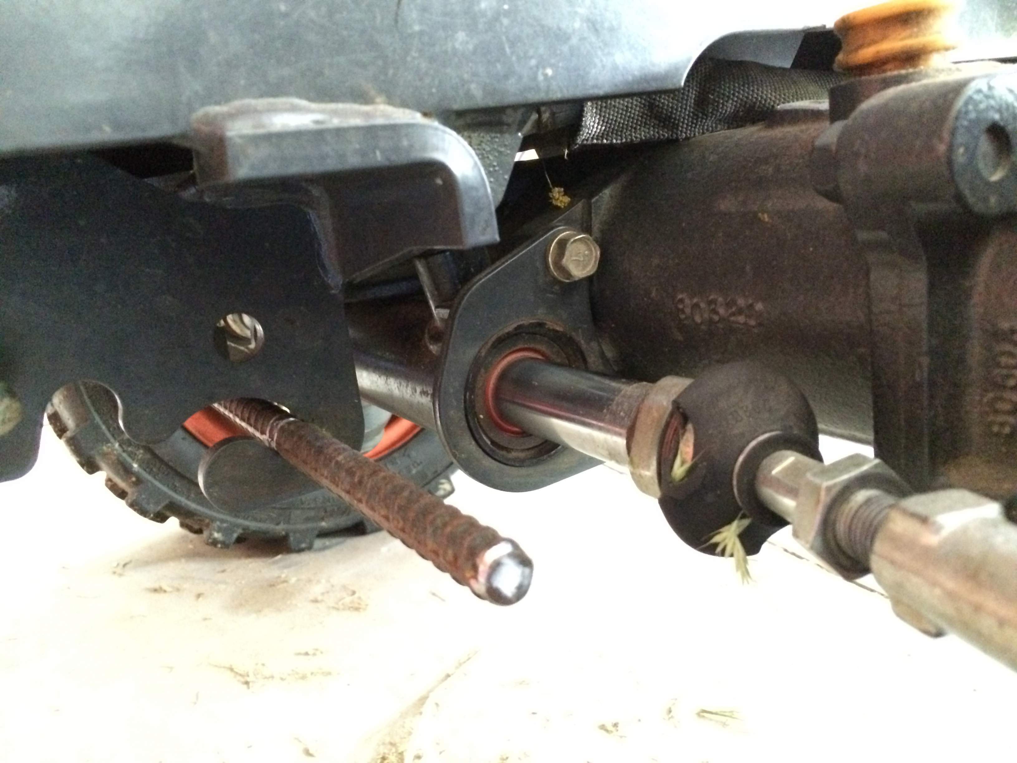 I had a piece of 1/2" rebar laying around, so I cut it and placed it in the notch in the frame as you see in the picture. Do you think it's strong enough to act as a protector for the steering universal boots?