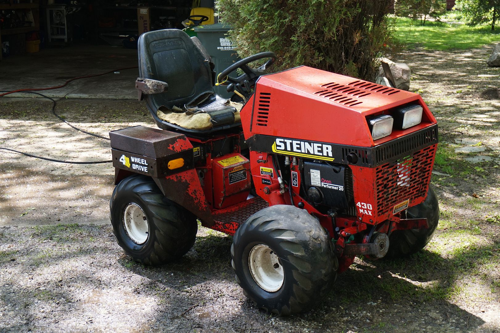 Hey guys, this is my first time posting to this site. My name is Jon and I am from Ontario Canada. I have a Steiner 430 Max I am working on restoring. It is powered by a 20hp Onan air cooled engine. I have tested the engine out and other then it being baked with mud dirt and manure in the cooling fins it has good compression, runs and idles well. The hydraulics in the machine are tight, it has no loss of power when climbing or throwing around attachments. It has just over 1150hrs on it.