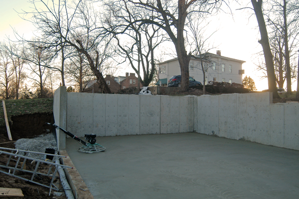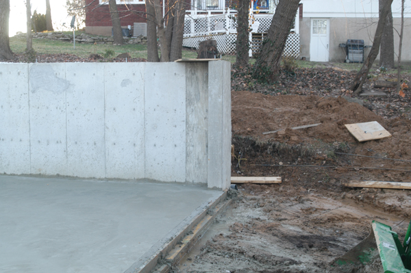 As far as the drain tube: I have it laid on the footing on all three sides. But the east sid has a hill that fall to level ground about half way down the wall, so the promblem is where to end the drain tube. in the hill with a cap, or do I bring it to the front of the garage? The troulbe with that is it is almost ground level and in front is the drive way. Along side of it is the patio and my walk out door. I might try and draw it out. I am hoping I can cap it and there by force any waer to the other end.