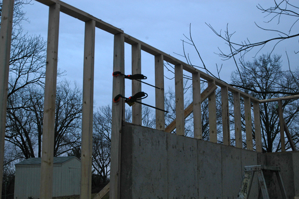 We have finished framing and putting up the plywood sheathing around the framing. I got my trusses today and I am going to be installing them tomorrow If we come up with any easy way to do this I will post it