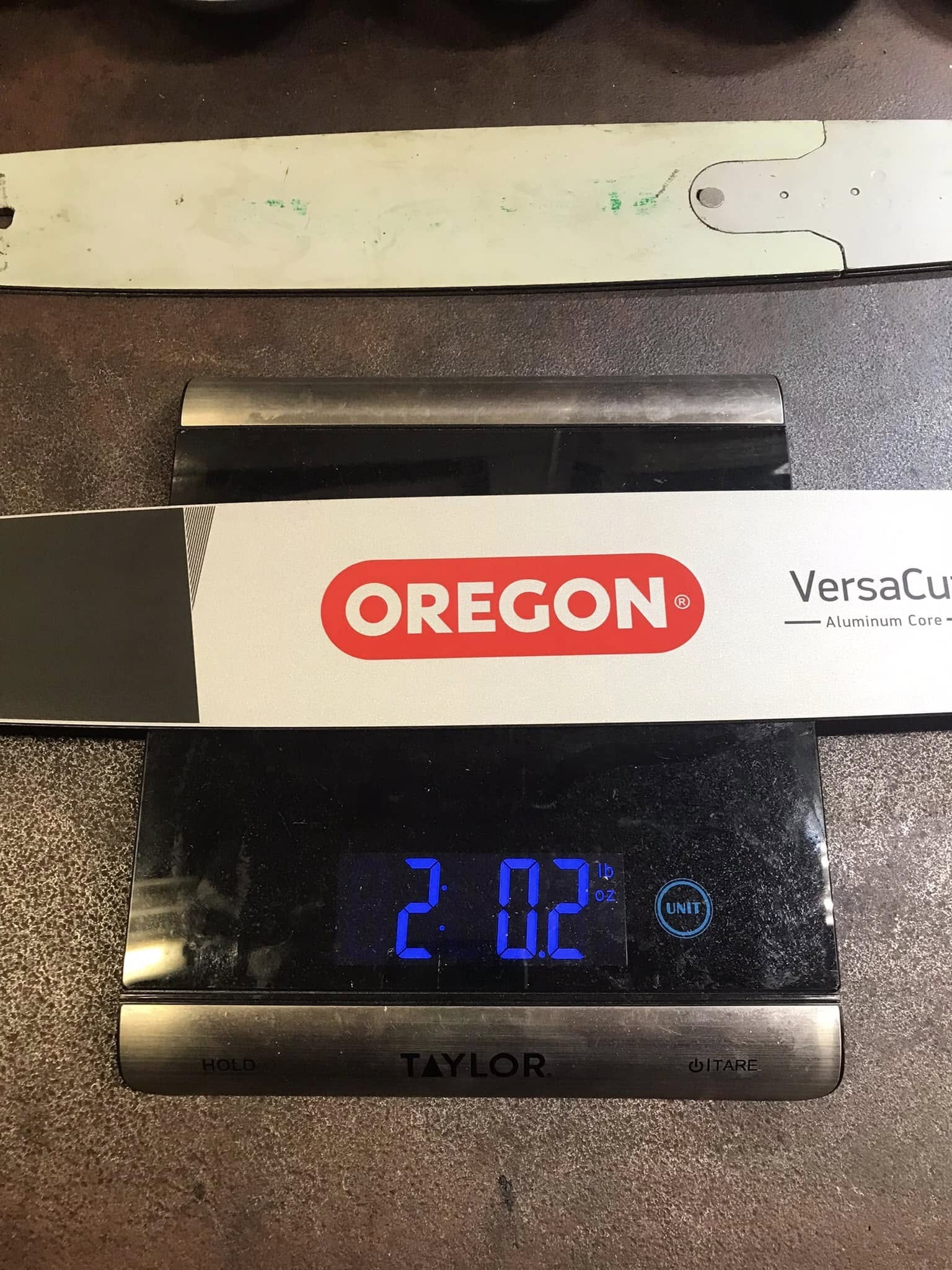 A 20" versa cut weighs same as my regular 16". Then show the 16" vera cut bar how much weight it saved.