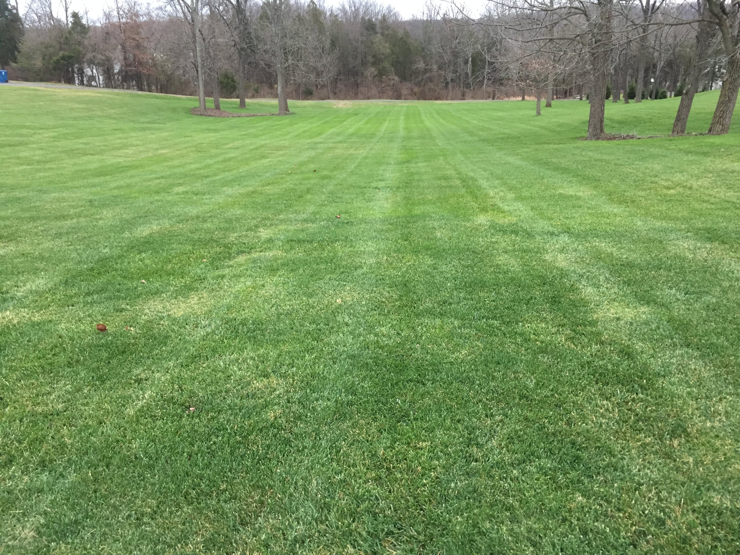 Here's mine after the last of the year short mowing, just as it's turning dormant for winter, as you can see from the bit of brown thatch. I mow longer in summer, 4"+ for tall fescue in heat, but take it down near 3" (as shown) for winter to avoid snow mold.
