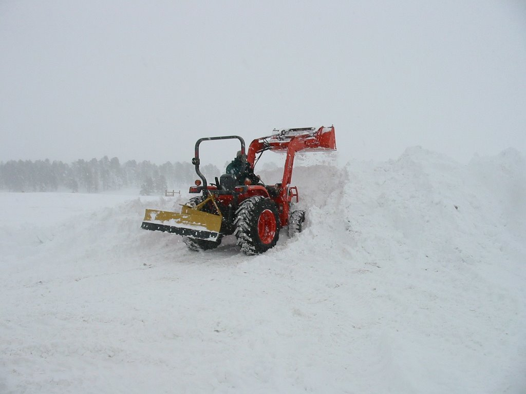 800' driveway, 80" rear snow blower and double ring chains on the rear. I have been quite happy with this setup for the past 25+ years. I'd like a cab.... Chained up I have significantly more traction in 2wd vs no chains and 4wd with the diff locked.