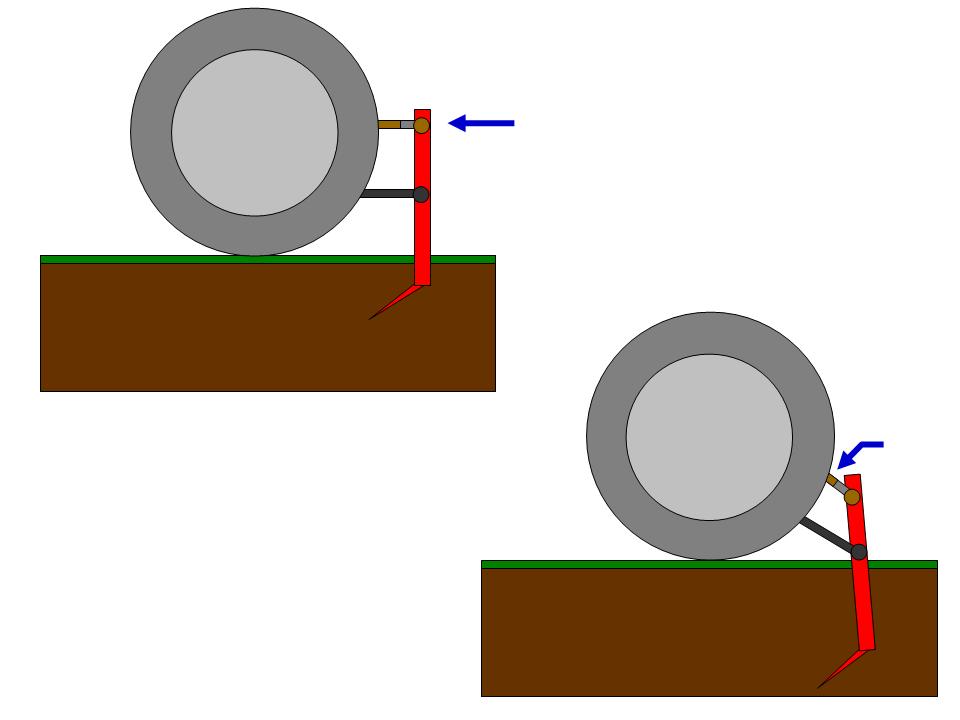 Angle above 90 degrees (call it A) between subsoiler & top link magnifies the compressive load - same principle that makes a chain binder work so well.