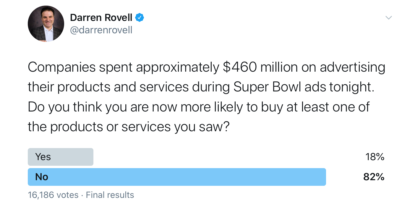 I'm boycotting it anyway. They can keep their Big Game, and overpaid players, commercials and "Half Time Show". Four hours to play a 60 minute game, really?