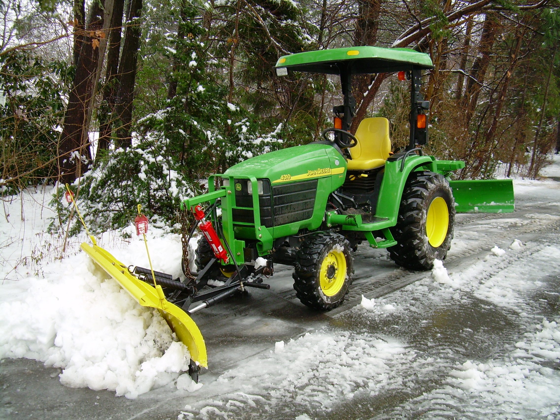 Yeah, the natural tendency is for the blade to push the tractor sideways. I don't have chains...not sure how much chains would help this particular problem, unless the chains were on the front or the rear diff was locked. Dunno. Someone with a blade and chain will have to chime in....