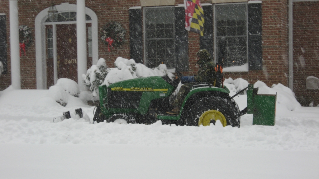 We only had 1 small snow so far but I noticed when plowing and I angle one way and try and turn in the same direction that the plow would push the tractor away from the desired direction. This was a very heavy wet snow and I didn't have my front chains on yet.