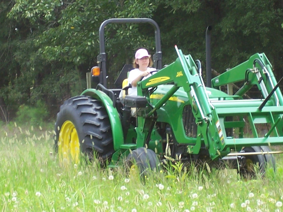 I made her mount-dismount the mower deck. I figure I will do it most of the time, but I want her to know how. She is the reason for the carrier I built for the mower deck. I could lug the mower into the 4520s bucket, but she had a real hard time.