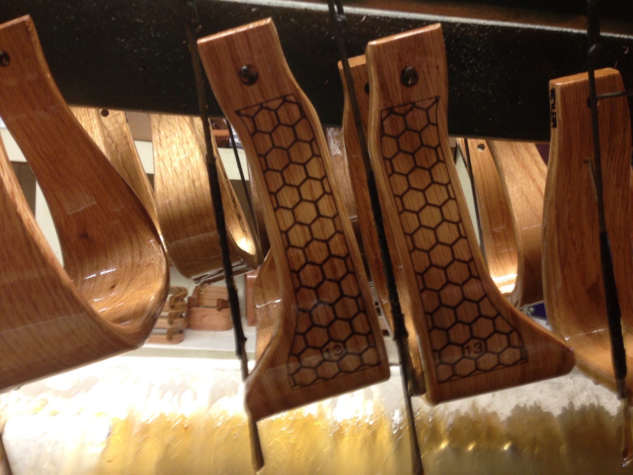 Ok, apparently I didn't see the last page when I posted this morning. My dad and cousin go out and cut the trees and bring em in. We have a band saw kinda similar to one Brandi was commenting about while back. The log is sliced in veneers about 1/8" thick which is placed in a stainless cooking pot. Heated then when limber enough it's bent. Then allowed to dry and run thru a glue machine. From there it can be sliced out on a modified radial arm saw to width. Then shaping, sanding, and finishing. I can build stirrups but can't really build anything else. Fence maybe. I see y'all's metal art or any kind of construction and I'm intrigued.