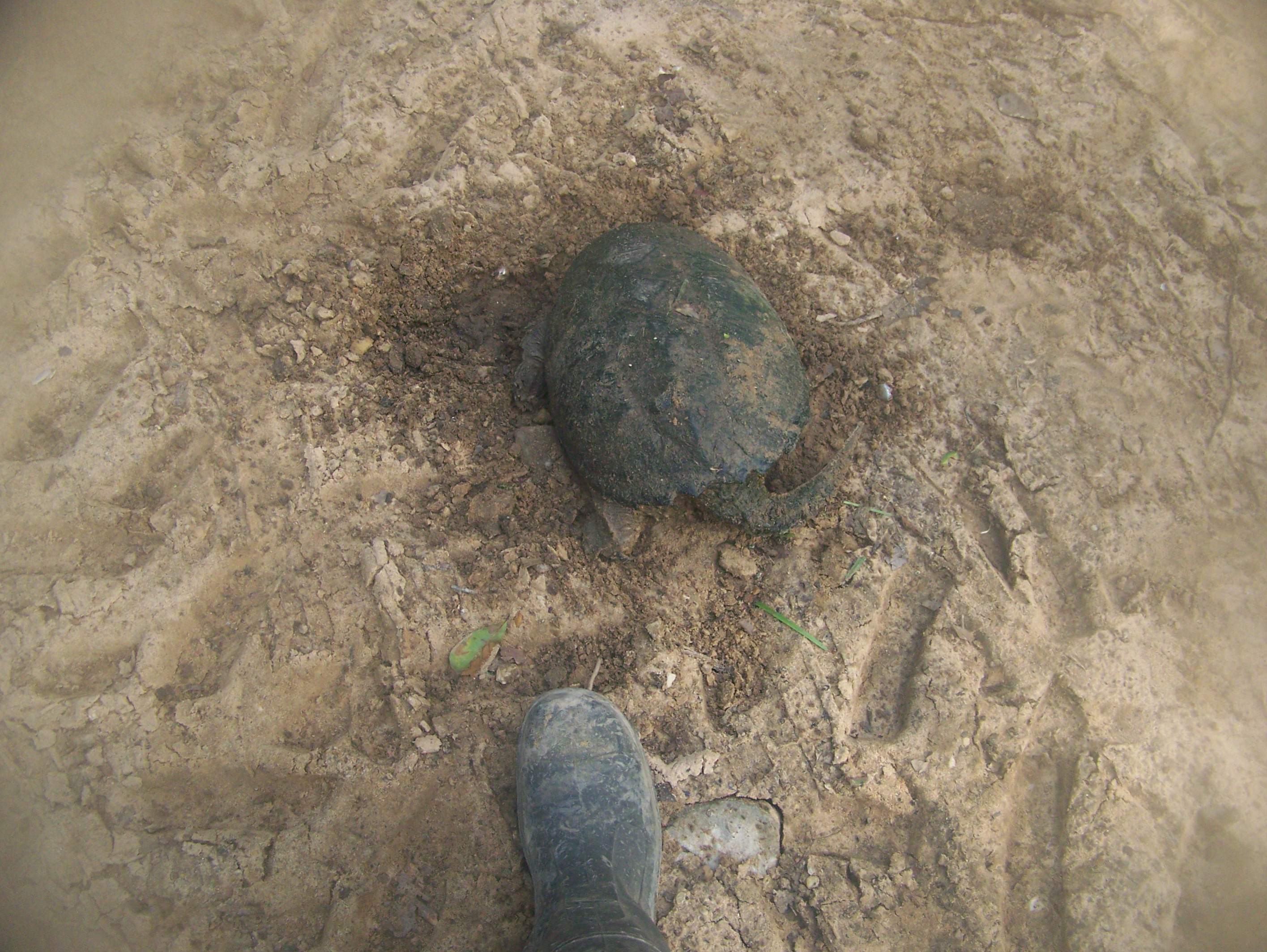 Believe it or not, I caught this guy 6-28-14 Snapping Turtle.jpgwith my backhoe bucket in my gully, yesterday. I had target practice with my Kimber in the middle of the driveway, then buried him out back.