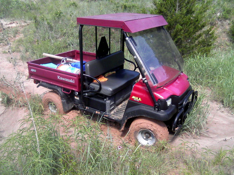My grandson and I went Mule riding this morning and he got it stuck. I managed to get it out and then promptly stuck it really good myself. I brought my tractor and pulled it out with him driving. For a 13 yo kid, he did a good job of driving while I pulled him up a very narrow ridge on the hillside.