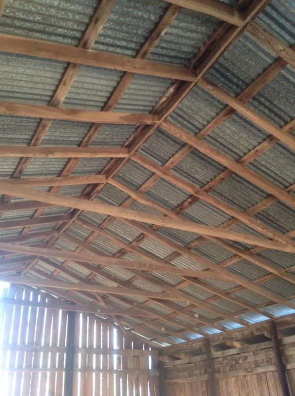 Built some time around 1970 (the year I was born) by the farm's previous owners, and located approximately 100 yds south east of the house, the barn initially consisted of a stand alone rectangular structure with its opening facing due east. Although it was only 30 ft long, 26ft wide and stood 20 ft at the roof peak, it seemed throughout my youth to rival the Roman Colosseum in size. It was constructed in typical pole barn fashion, with dark black 12" diameter creosote poles at each corner and smaller 8" diameter poles spaced 6 ft apart along each side wall, as well as the front and rear. Four rows of full dimension 2x4s were notched into the poles horizontally and attached using long steel nails with a hatched head pattern and prominent spiral grooves along the entirety of the shank. These heavy boards composed the general skeleton onto which the exterior walls were nailed. Rough-cut 1x8 and 1x10 oak planks oriented vertically composed these 4 walls. I suspect that initially the planks were fitted tightly alongside one another to keep out the rain, but most certainly succumbed to the inevitable shrinkage common to all "green" lumber. I say this because there have been 1/2 inch gaps between the planks as far back as I can remember. Its roof was constructed of the heavy corrugated ( currently unavailable) sheet iron of yesteryear. Even today, I regularly hear farmers and ranchers complaining about the shortcomings of modern tin. That sheet iron was attached to oak lathing with lead headed nails, many of which I later pulled off to use as sling shot ammunition, or simply to roll down a groove in the roof's corrugations. Sitting defiantly atop the roof peak were 3 aluminum lightning rods, each connected via a cable of braided aluminum which ran east along the ridge cap, down the east eve southward, and ultimately to a copper rod driven deep into the ground alongside the barn's southeast corner.
