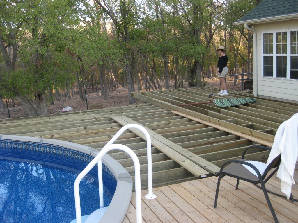 My mother in law had the pool company put in a small deck when they set up the pool. The pool company charged her $3k for the 150 sq ft deck :confused: :mad: :mad: :mad:. Don't get me started on this deck.