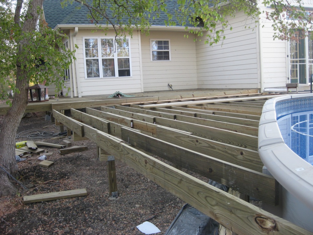 So when the in laws put in an above ground pool in September, we thought it was a perfect time to put in a deck to make the area more usable.