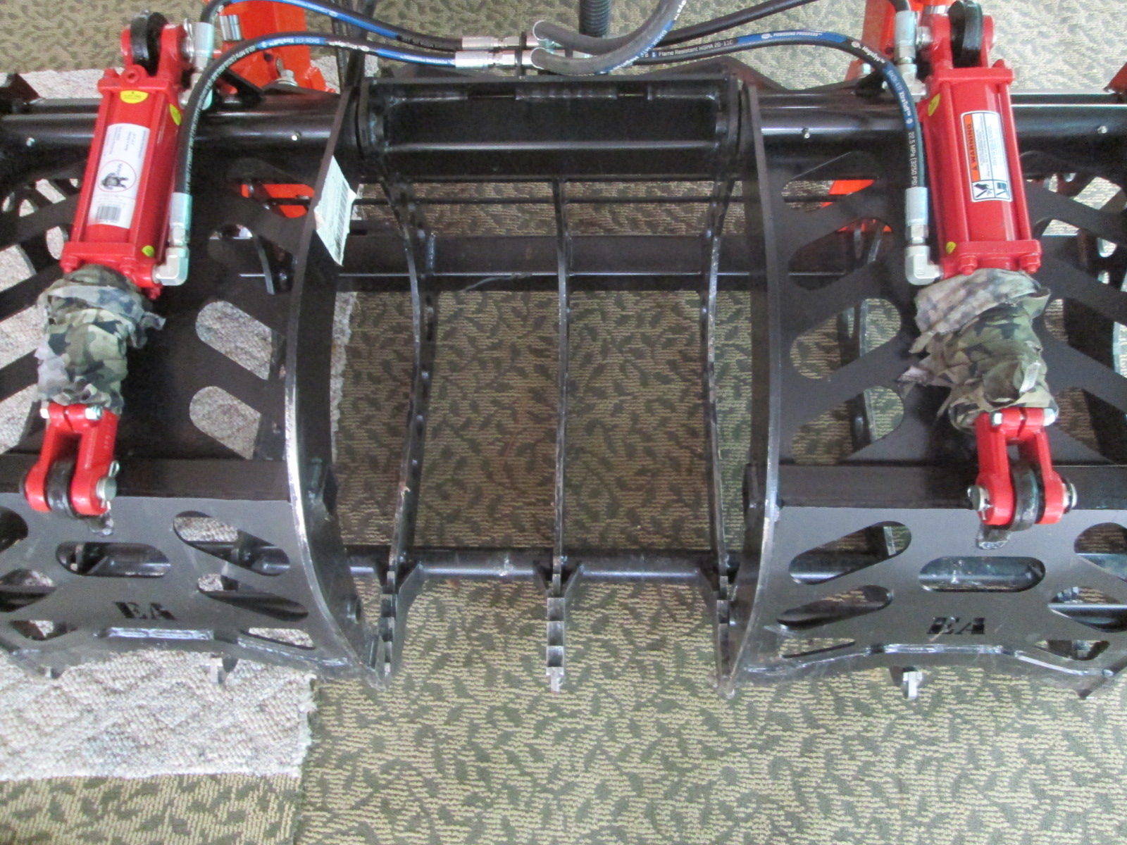 Oily rags wrapped on hydraulic cylinder shafts help protect them from rusting/getting scratched... When the lids are closed, (which is the 'normal' way to store the grapple-bucket) the shafts are exposed, so I keep them covered/wrapped... I put that pic in there as a reminder...