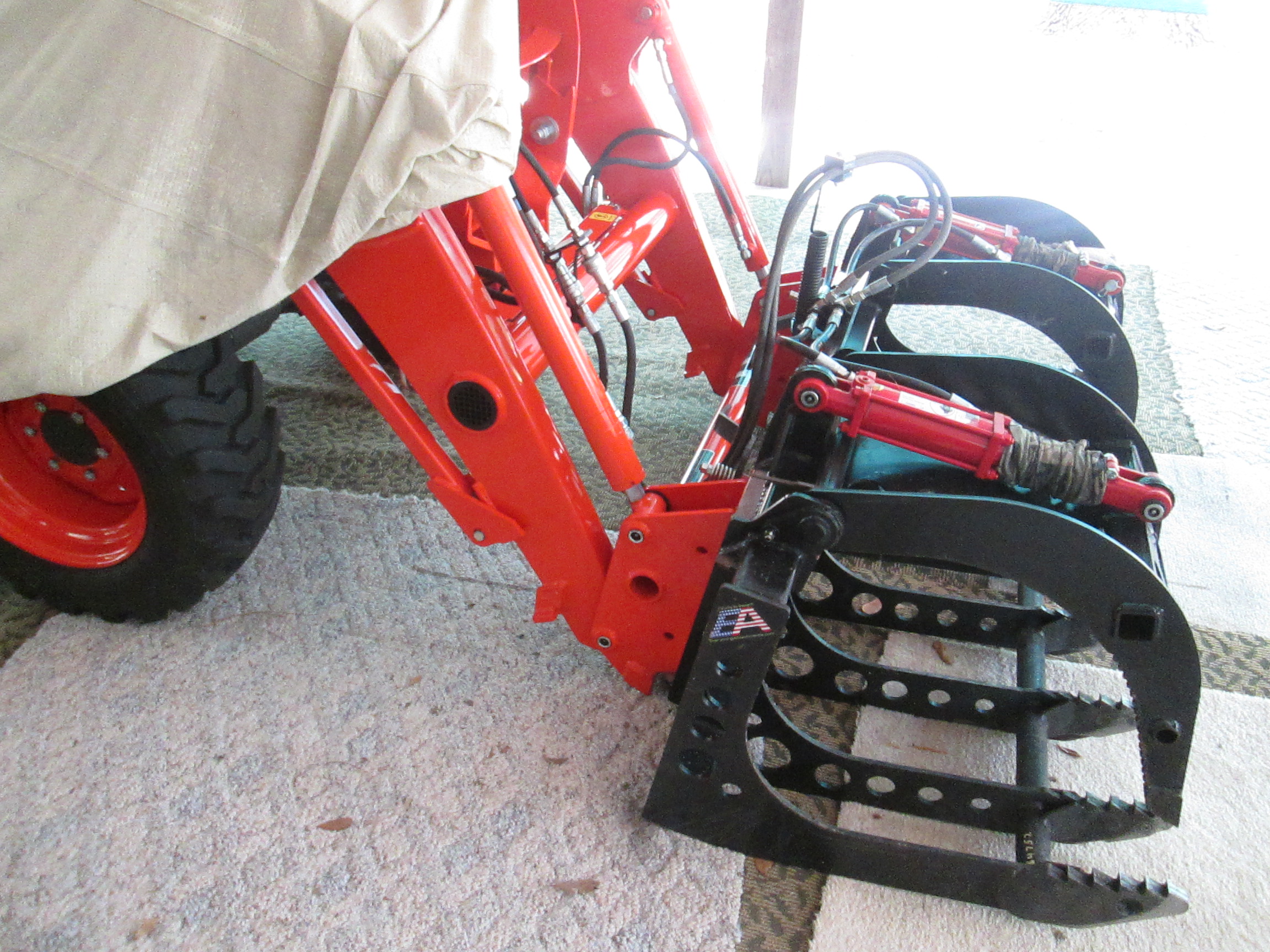 For all you ETA grapple-bucket fans, here are some pics of my handy towing/lifting/rigging-chain storage... I am sure that many/most of you have already seen this or iterations of it and perhaps have designed your own adaptation... I give you my rendition herein and look forward to YOUR ideas/application(s)... The loader-tube-liner/'chain-holder' is salvaged (free) drainage pvc (ADVANTAGE: It has a thinner wall, lighter-weight, and allows more room for a LONG chain) and the vented ends are heavy-duty pvc drains... The pipe/end-plugs have added friction via duct-tape...