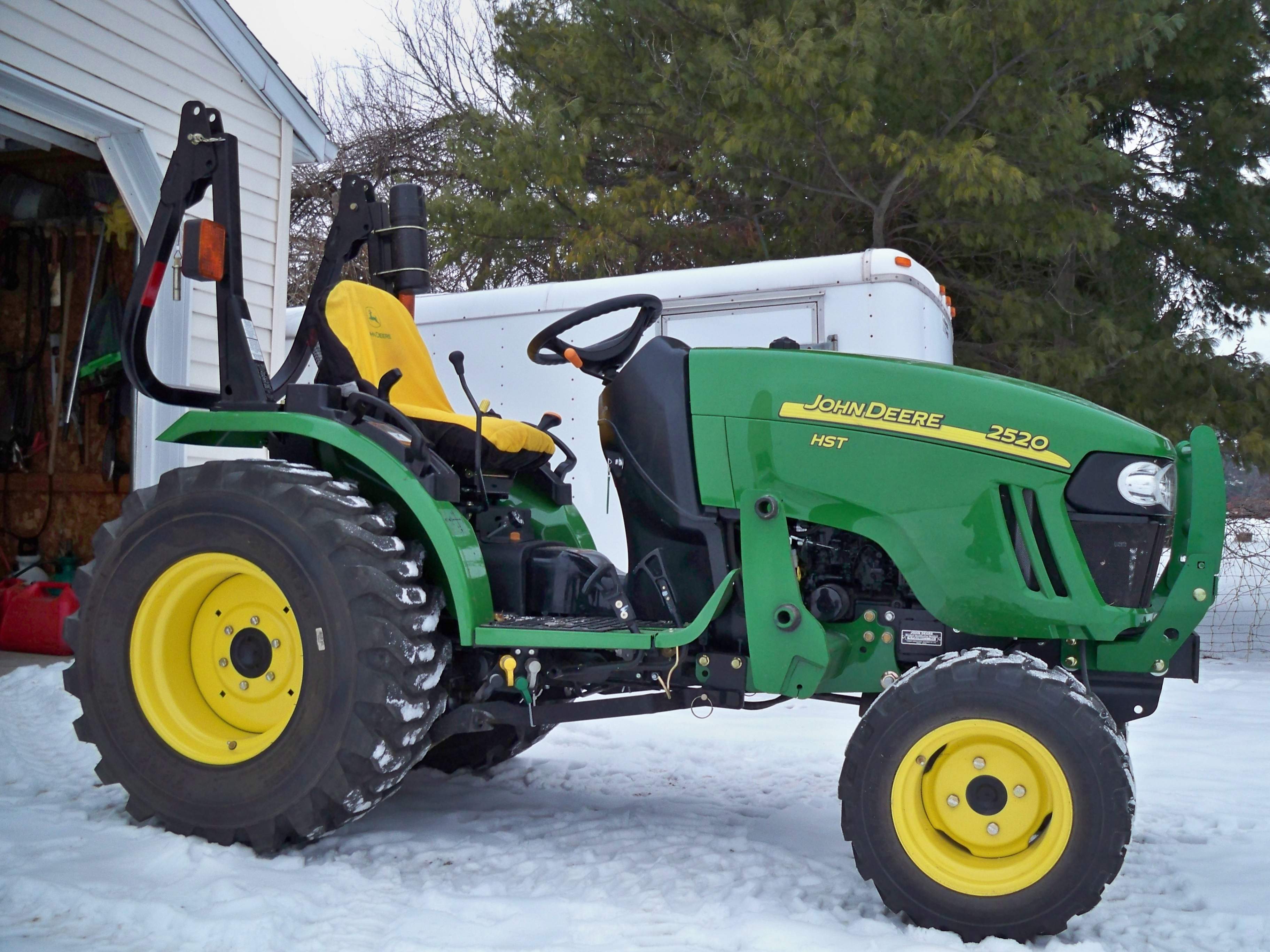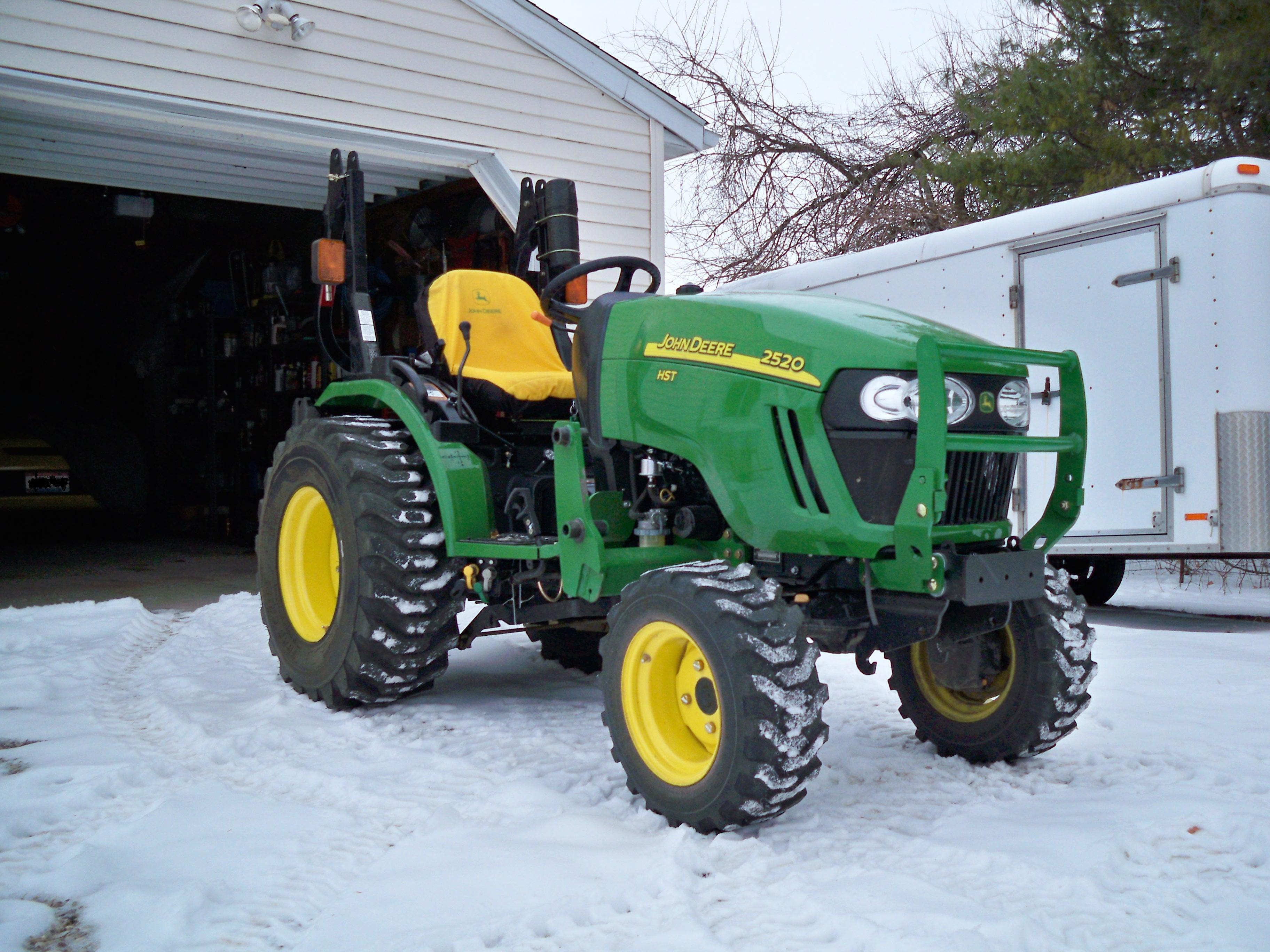 They came to get my JD 2520 on Dec 23 to install the 54" snowblower I had ordered. The tractor looked kind of lonely sitting out there minus the mower, and FEL :( . I miss her already. Can't wait to get her back with the new blower :drool: . BTW what does everyone else use to hold up the MMM brackets when the mower is off the tractor? I have been using tie wraps but it looks dumb.