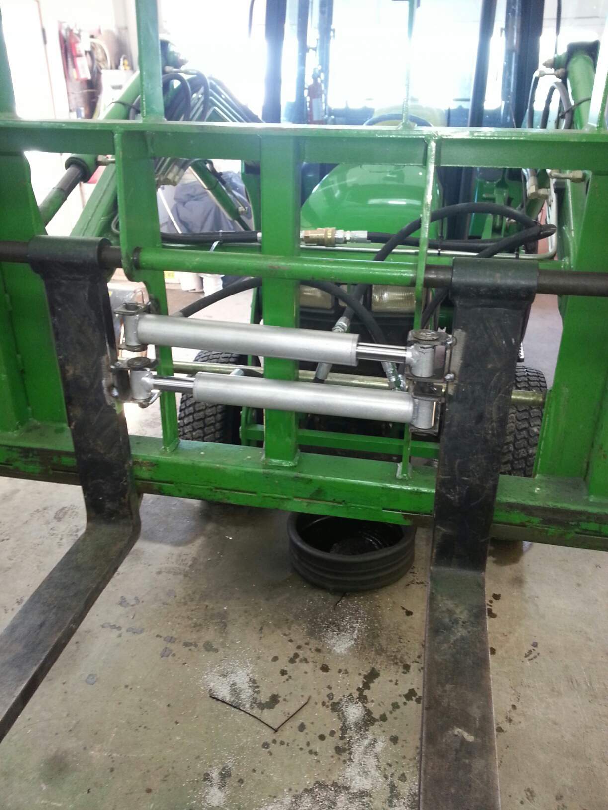 That is a draw (just to see if I could draw your attention ). No just kidding, good eye that piece on the left fork is just a sleeve around the tine with a pin welded to it for testing and fitting it was not welded to the tine so I could move it up and down to get the right placement. I did not want to weld to the tines until I was sure on the right location and things were going to work. I only did that on the first side then the second side was just a copy. I have removed it now but I guess not before I too the pic.