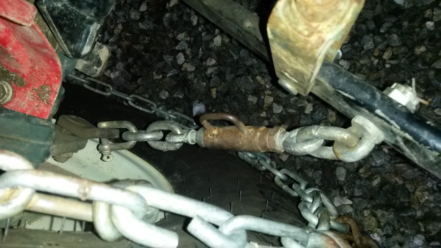 I had a similar problem: the aftermarket clevis, that attaches the swaychain to the 3-point mount behind the transmission, kept stretching. I posted a photo here after it neared breaking. I replaced it with an 'H' style chain splice. Thread with pics.
