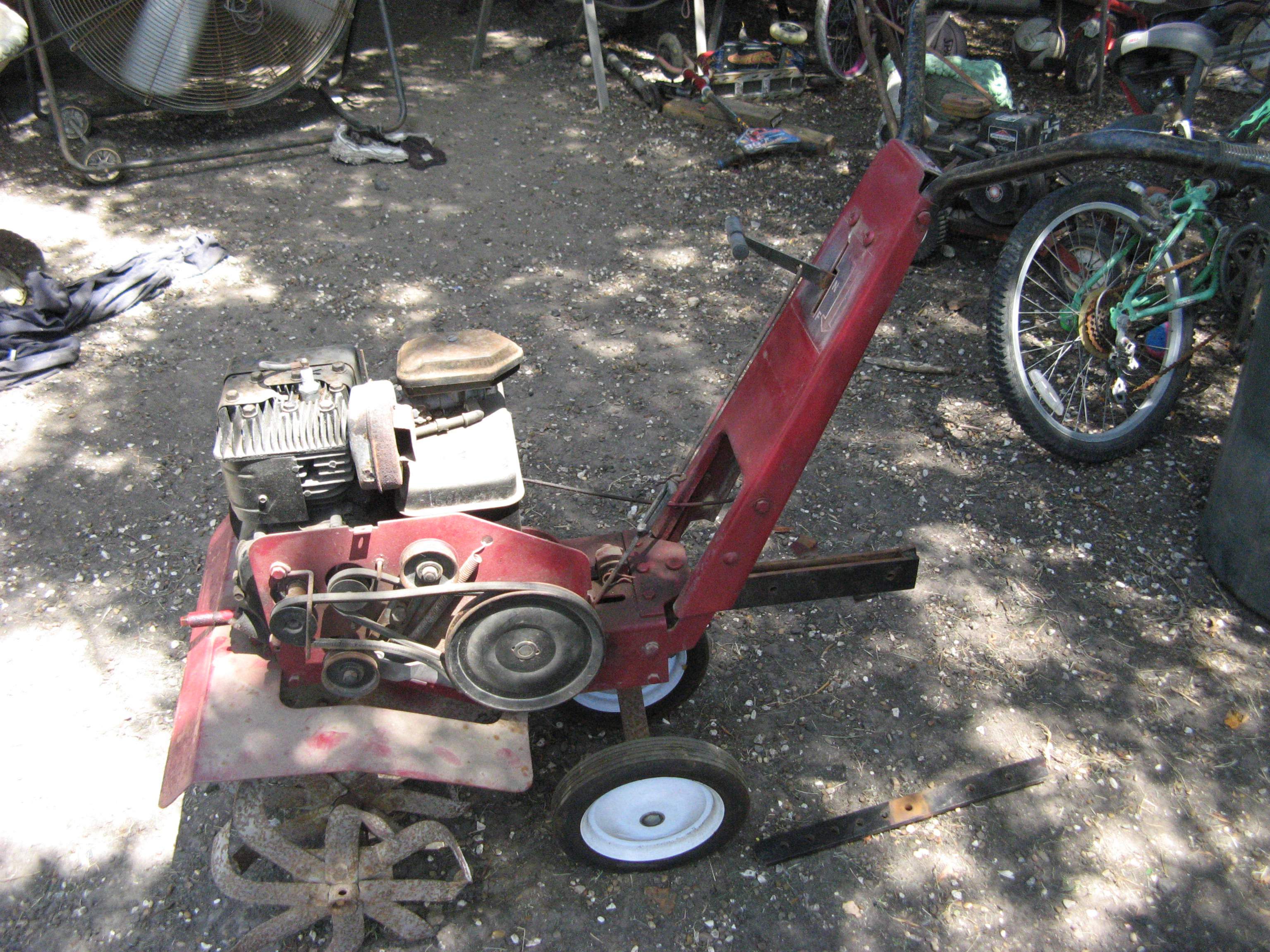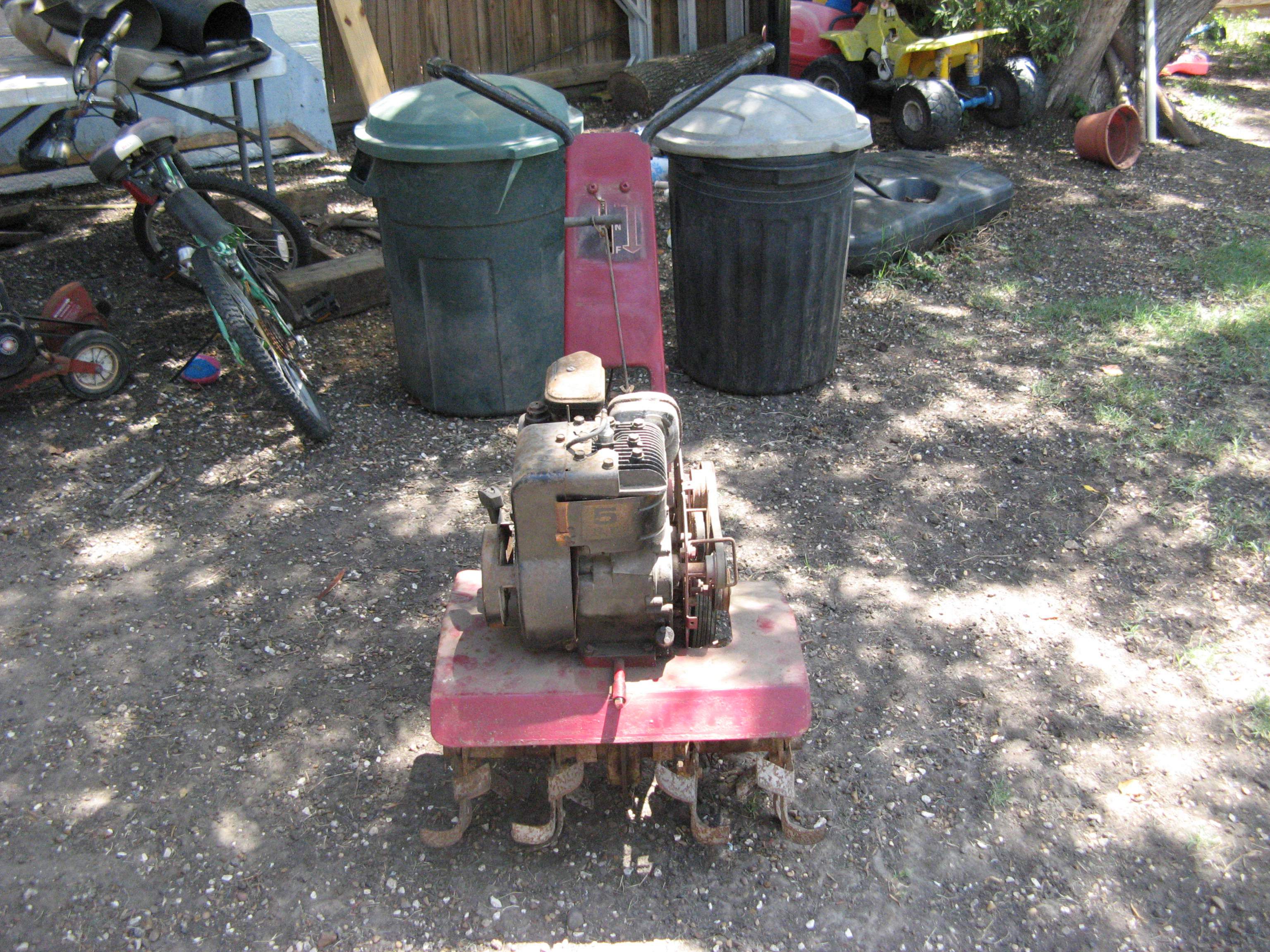 That's an old one, I picked up one new at Lowes for my mom to use in the garden and the tobacco patch way back in 1972. She used it for years, that thing wouldn't die, still ran when she gave up gardening and parked it in the shed. My brother dug it out to haul to the scrap about a month ago. I'll see if he still has it if you need any parts, but I wouldn't be surprised if the engine is locked up.