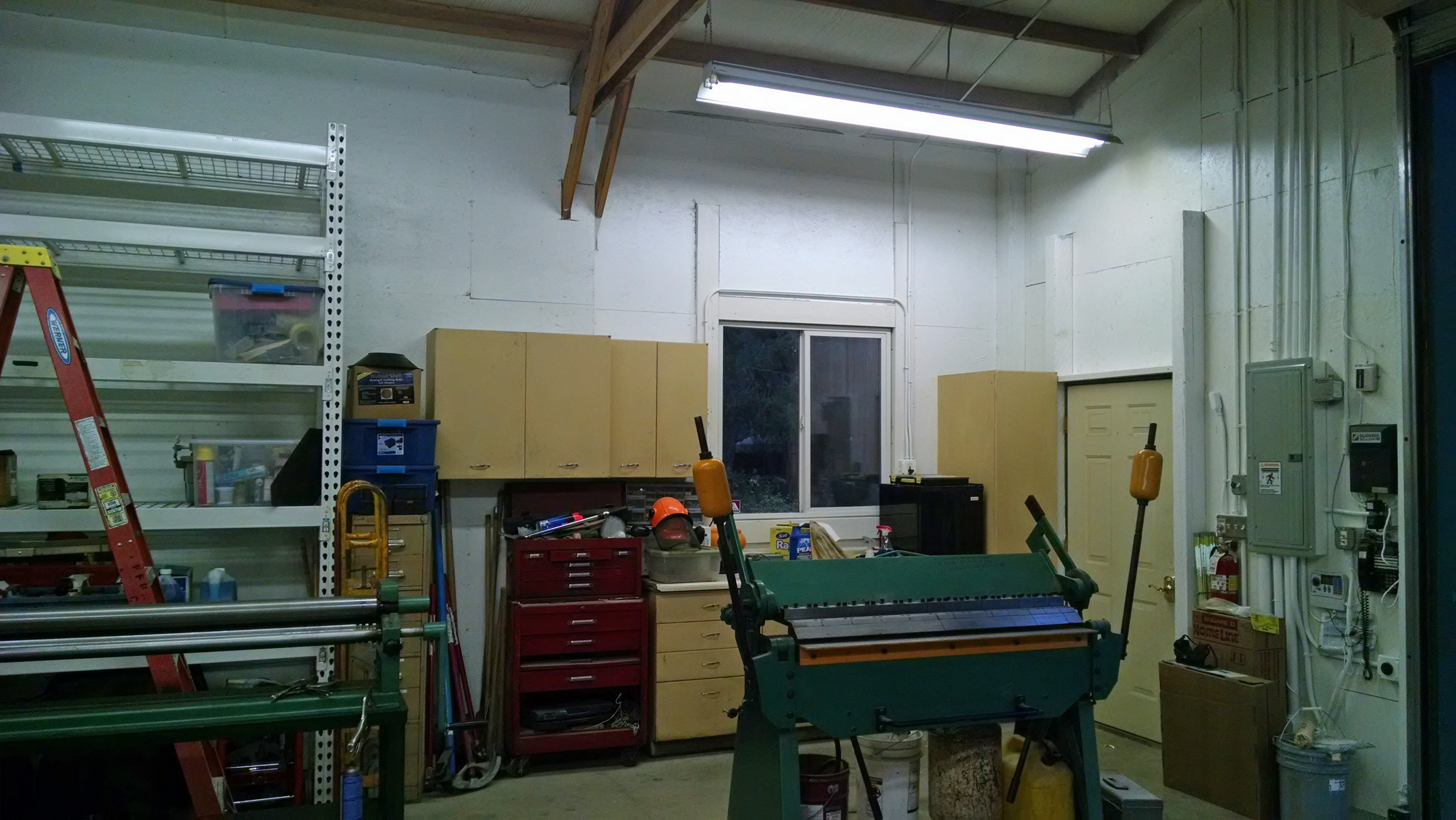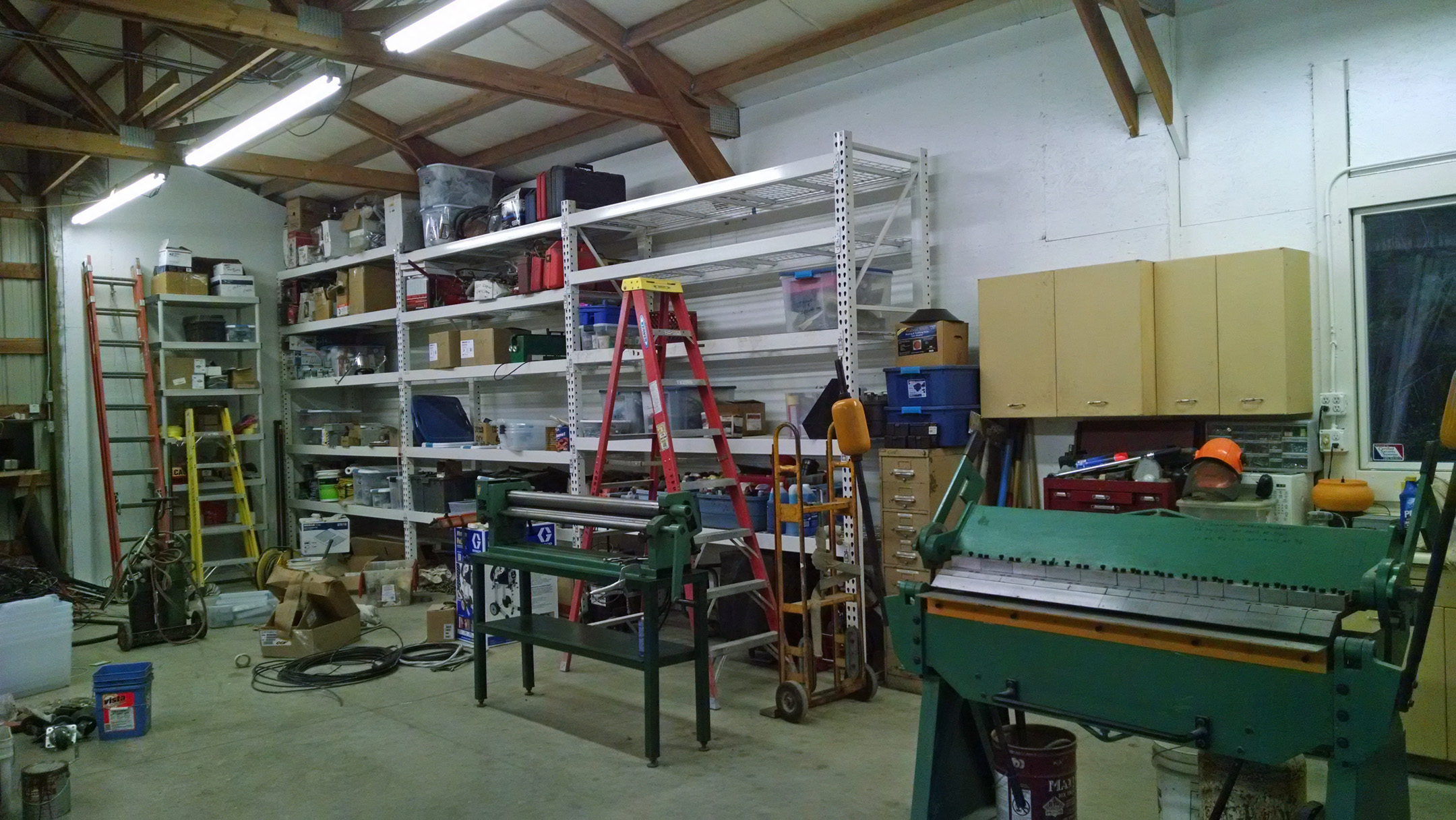 Looking good. I had the same problem in my 24x42 ft shop (12 ft walls)--too much junk stacked on the floor mostly in cardboard boxes. Had a real problem with nesting field mice. So I just had a load of 8-ft long 2x4s delivered and started building 14" wide shelves and installing them wherever there was room along the walls.