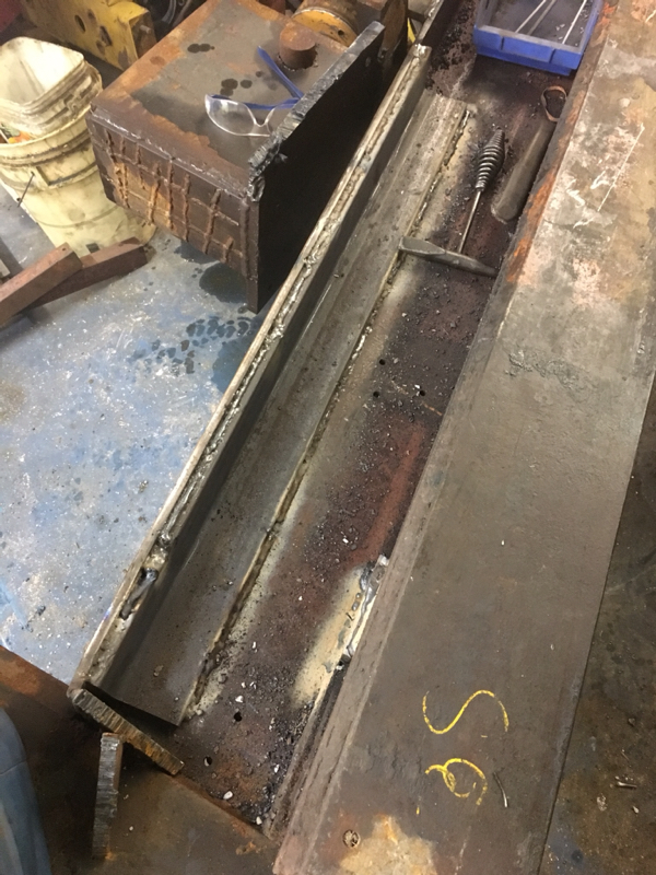 I welded a piece of angle iron under the beam flange on my wood splitter to hopefully stop it from bending. Give me some slack on the crappy weld job. I had a box full of 3/4 burnt welding rods and I figured this would be a good spot to use them.