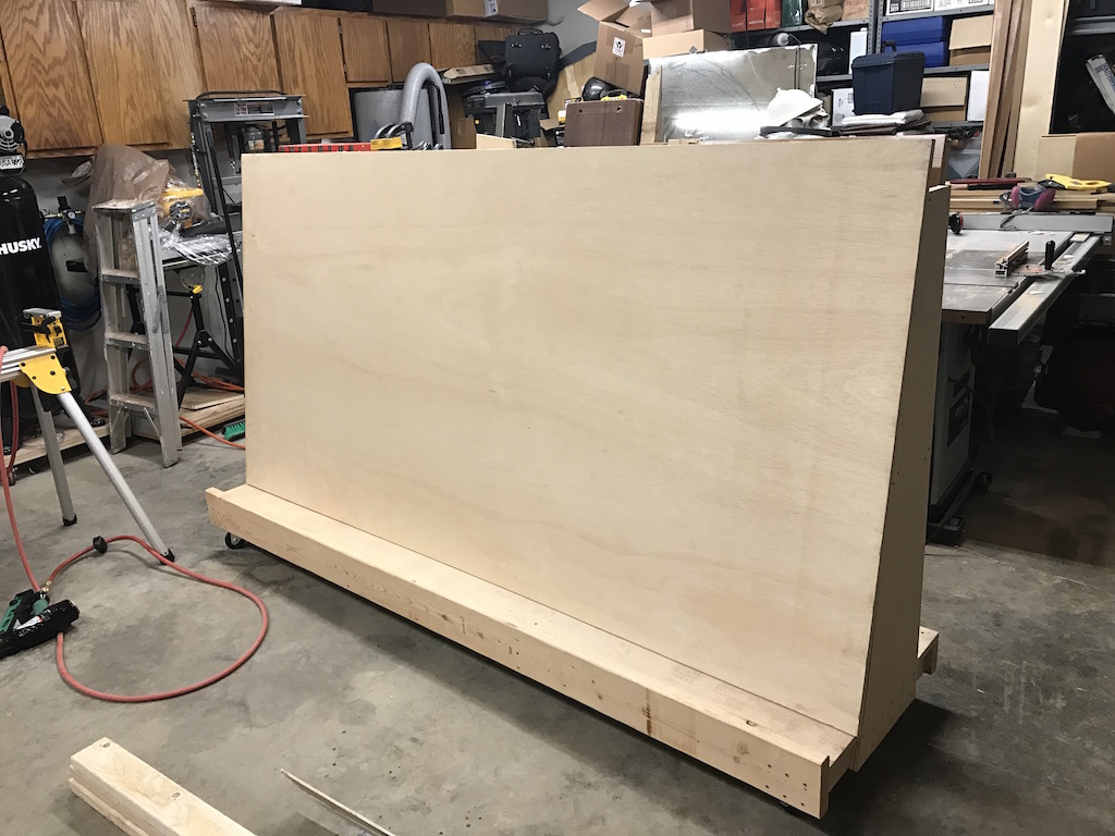 nicely done and very neat Dragoneggs. I have a partial sheet right now clogging up the floor of my wood shop. Have an overhead flat storage area but kind of a pain getting these heavy sheets up and down. Your idea is much better.