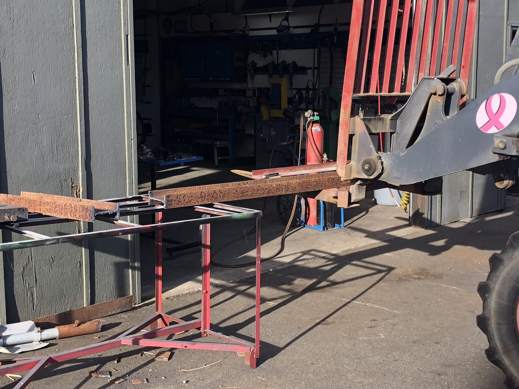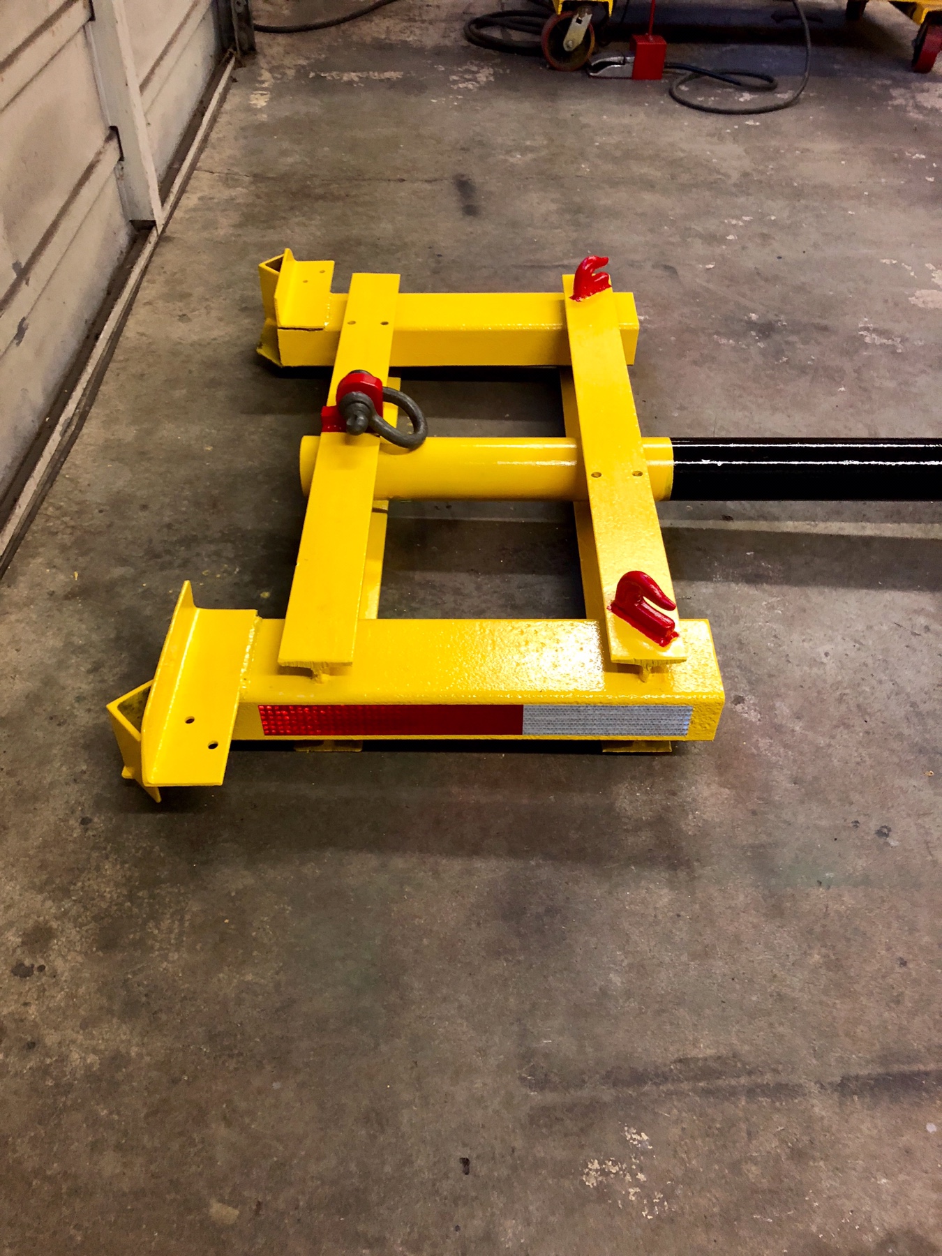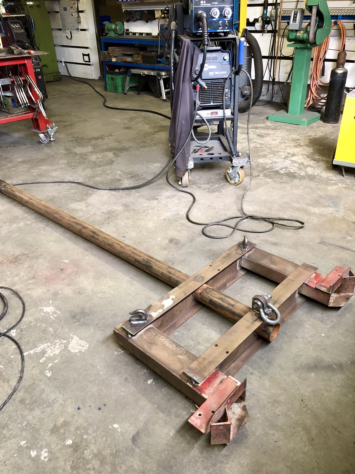 I also built a lifting arm I am using to move and store implements in the shed. I have dollies but they don't work too well because of the floor in the shed is made of cement tiles laying on dirt. The floor is quite bumpy after years of use.