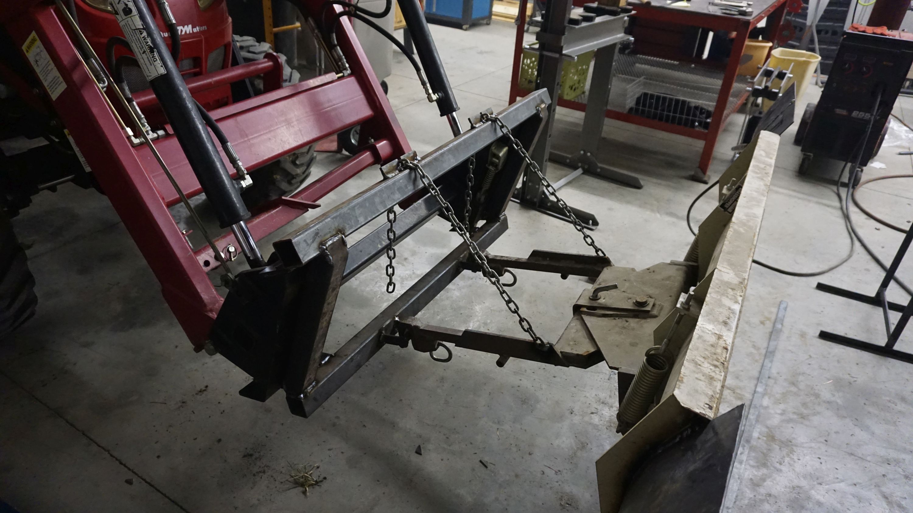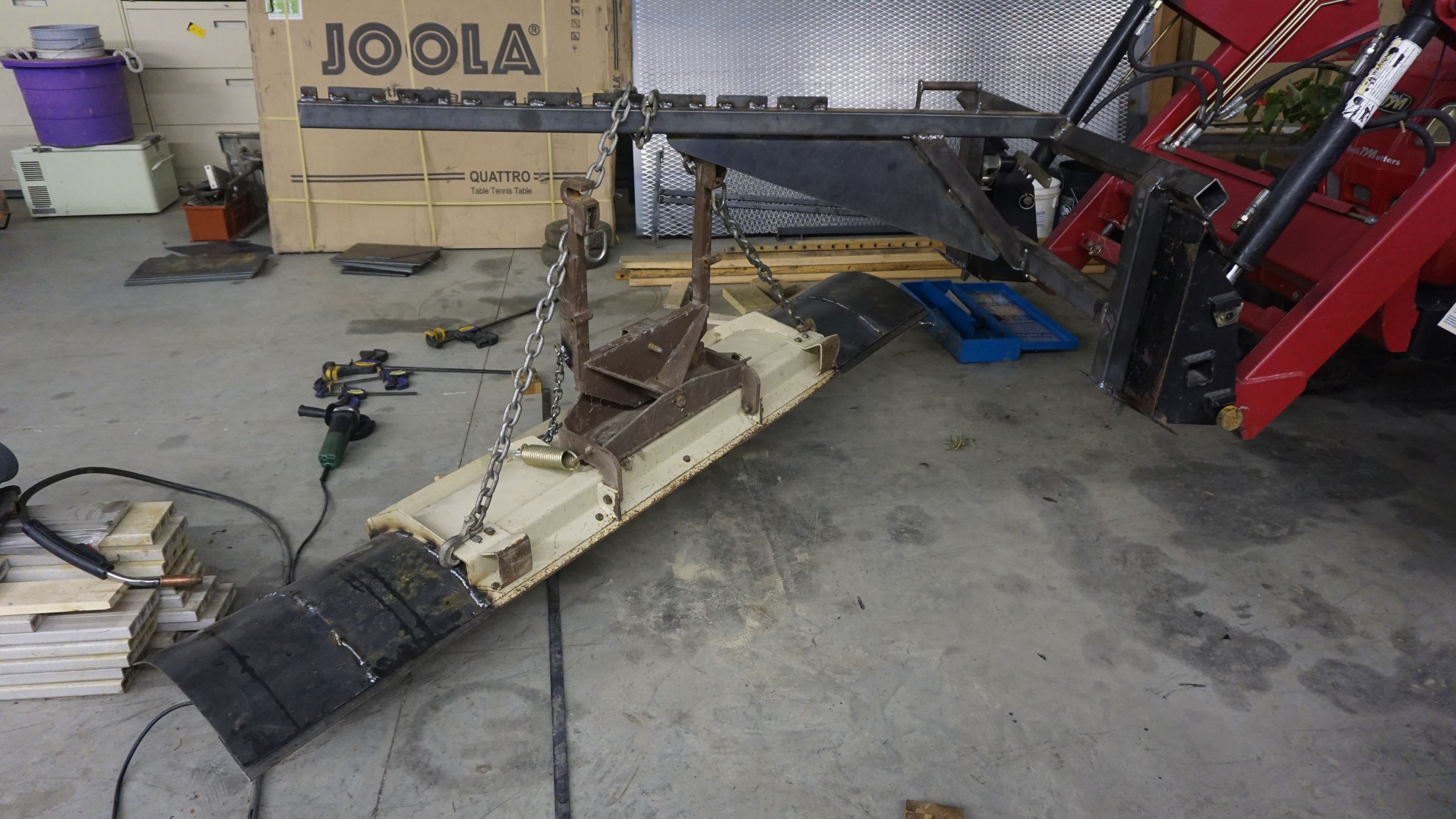Lifting arm with the snow blade hanging on it. Work in progress.