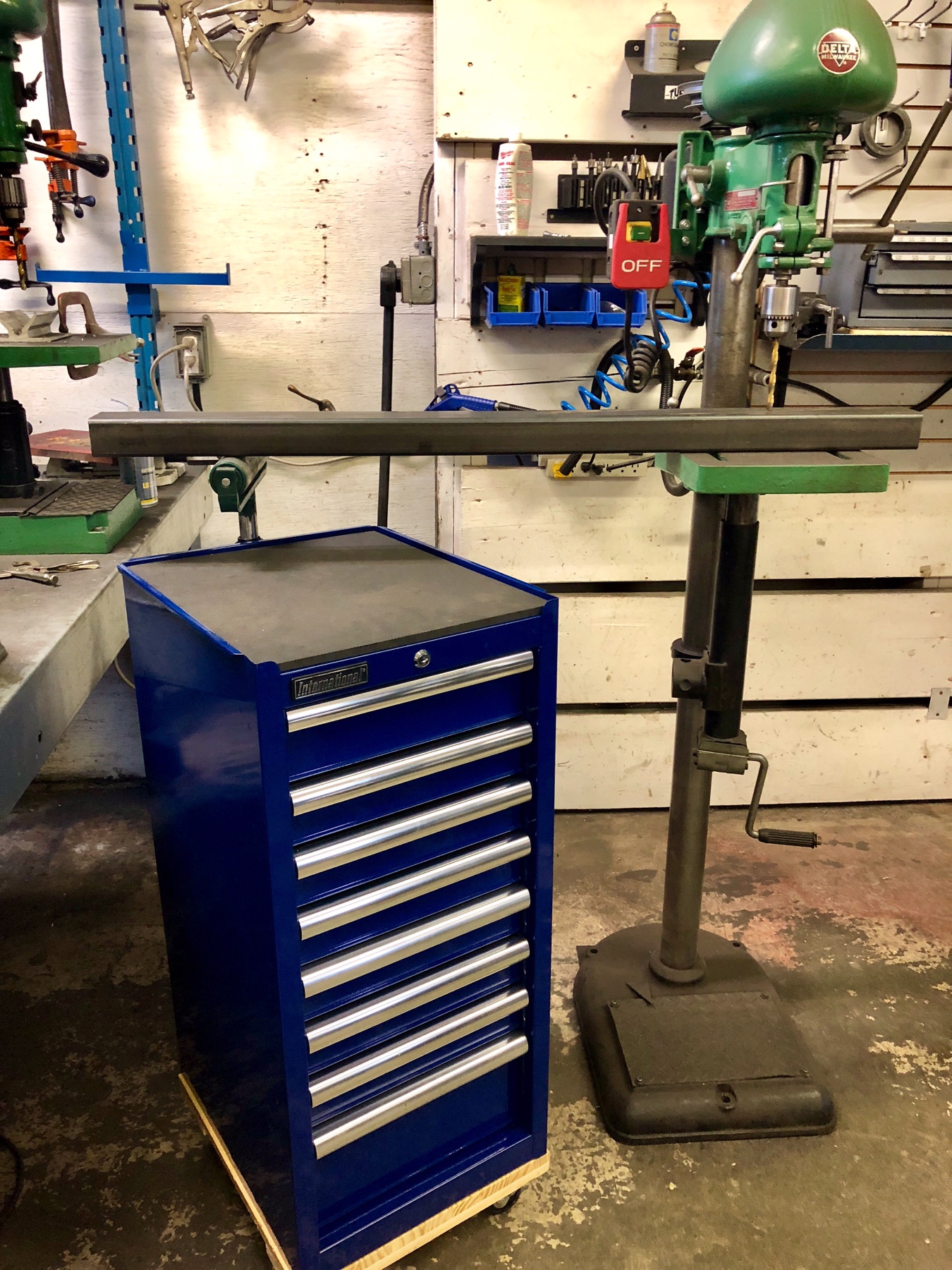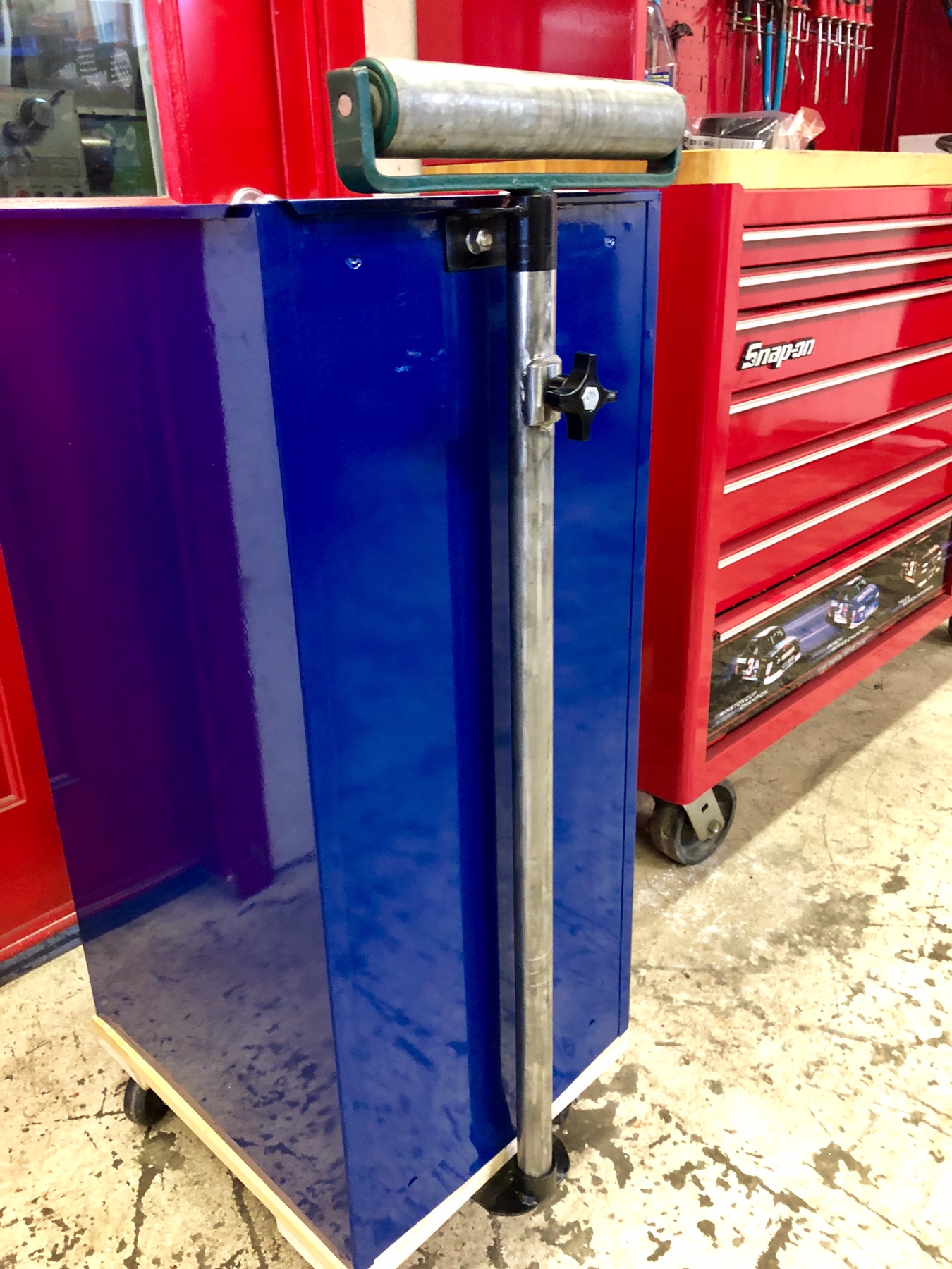 Nice... but! I have a couple metal cabinets that I made plywood dollies w/casters a few years ago. They are just begging for a custom metal frame dolly. For some reason the wood base bugs me. On my list of projects to grab some scrap 1/2 or 3/4in angle and make a base frame for them. But now I seen yours, I don't feel as bad.I decided to �obilize this side cabinet I知 planning on using for housing drill bits/annular cutters. While I was at it I incorporated an adjustable roller work support for my drill presses.