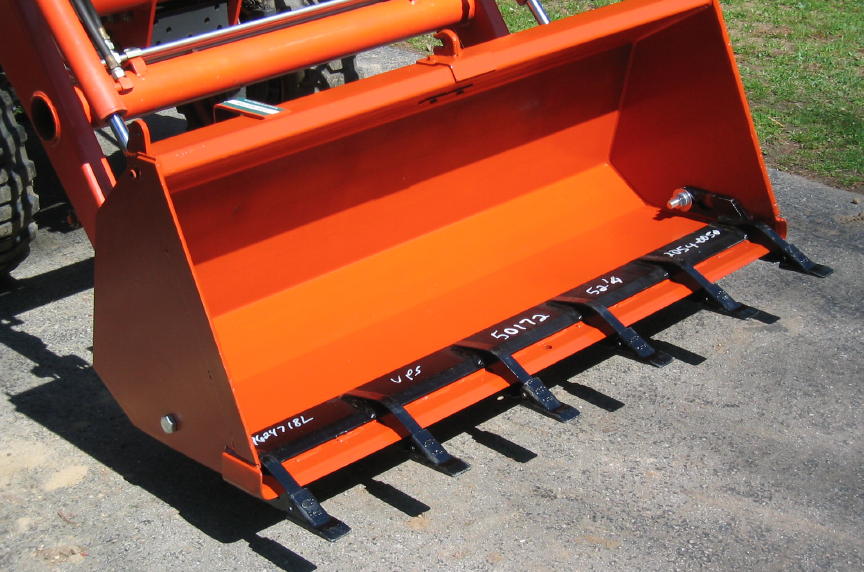 The snow is gone now and I found time today to put the thing on. It cost me 325 for the 72 inch with 8 teeth. I put it on in about 20 min. using a torch to cut the two holes. I went out back of the shop and ripped 5 small trees out , each about 2 to 3 inches in diameter with one angled bucket plung each. It is sandy soil and an L48 Kubota but this would not have happened before the tooth bar. Yes, it does improve the usefulness of my loader, now I have to get used to how to use it and when to use it. It will make root clearing much easier than ever.