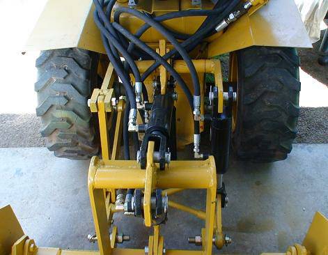 Too bad he used hoses as big as sewer pipes. Tiny 1/4" hoses would be just fine and leave less of a rat's nest. Those hoses look like 1/2" "fire hoses" to me. Without inline restrictors, I'd bet there's no fine control of position. Then again, maybe that little tractor has such low flow that it doesn't matter.
