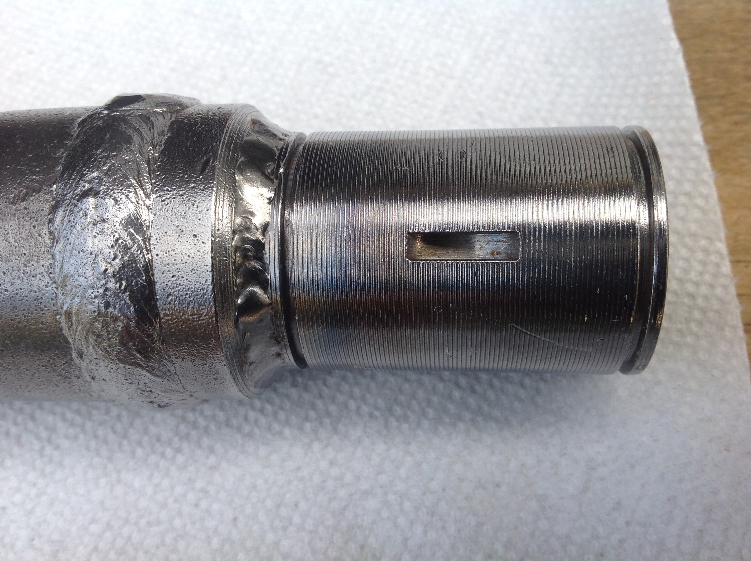 I cut a 2" section out of the cylinder that did not have internal threads and machined two snap ring groves and I cut a slot for a woodruff key.