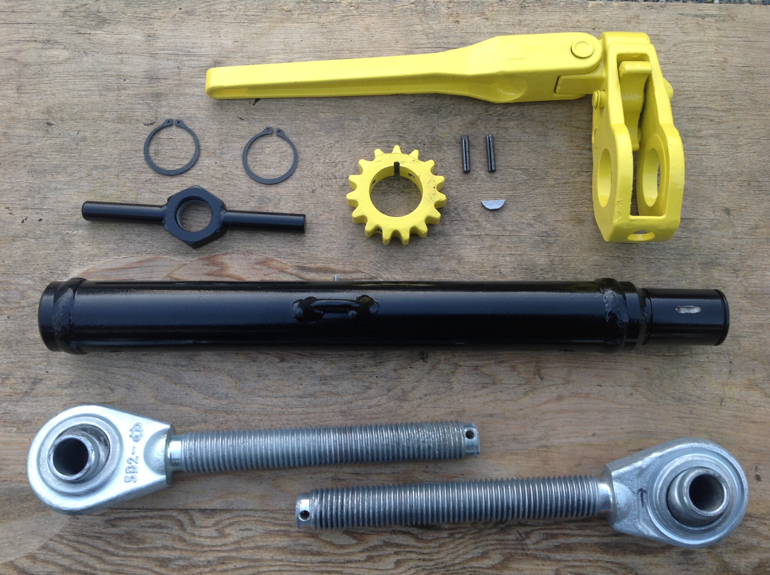 The diameter of the top link tube on my John Deere was to big for the diameter of the ratchet handle, that's why I had to weld a piece of the tube from the binder to the end of the top link, if your top link threads diameter are to big to go inside the 2" collar, you can use a TSC top link, the diameter of the tube is almost the same as the ratchet handle and sprocket gear, you could take a catagory 2-3 bushing and machine the inside diameter, slide it over the top link and weld it in place and then machine the outside diameter to fit the ratchet handle, it's not much bigger and you would not lose the 2" of adjustment if thats an issue for you, or you could come up with your own creative way to attach it.