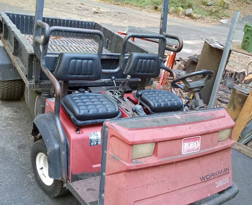 One of the first ones I went after was a sprayer unit. A big tank with outrigger wings but it doesn't have the pto unit. It runs off the mid mounted pto, to run the pump if I am correct. It is still out back awaiting it's trip to TN where it belongs. It has the cylinders for the bed, but the bed isn't there, only a tank. Access to the engine compartment on that one is via little doors built into the sides of the tank mount. You can lift the tank up manually, as it is hinged like the beds are, but it doesn't have the provisions to use the hydraulic cylinders to raise the bed. (strange, since the lift cylinders are there going to waste!) The guy that bought it wanted the carburetor, so the carb on it is bad. He bought it with the transmission already sold. I went to Lakeland Florida and picked up another that had a good transmission, split the cost with TN friend. He gets motor/tranny and I get the bed/frame. I had illusions of making a trailer out of the bed/frame and pulling it behind another Toro, using the rear hydraulics to raise and lower the bed on the trailer. When I got to Lakeland, the bed was in pretty bad shape, so I wasn't sure if I wanted to put that much work into it. Now the cylinders, hydraulic pump and linkages from that one will go to make the KY Industrial a dump bed. (it was manual raise, no cylinders). If one doesn't have the lift cylinders, then the hydraulic pump is different, only rated at 1000 psi instead of 2800, which is enough to run the power steering.
