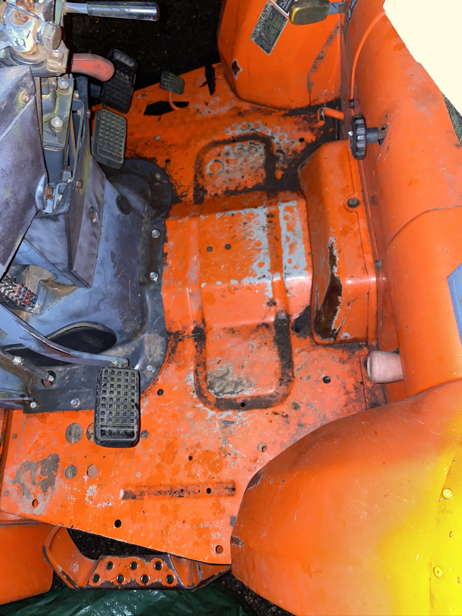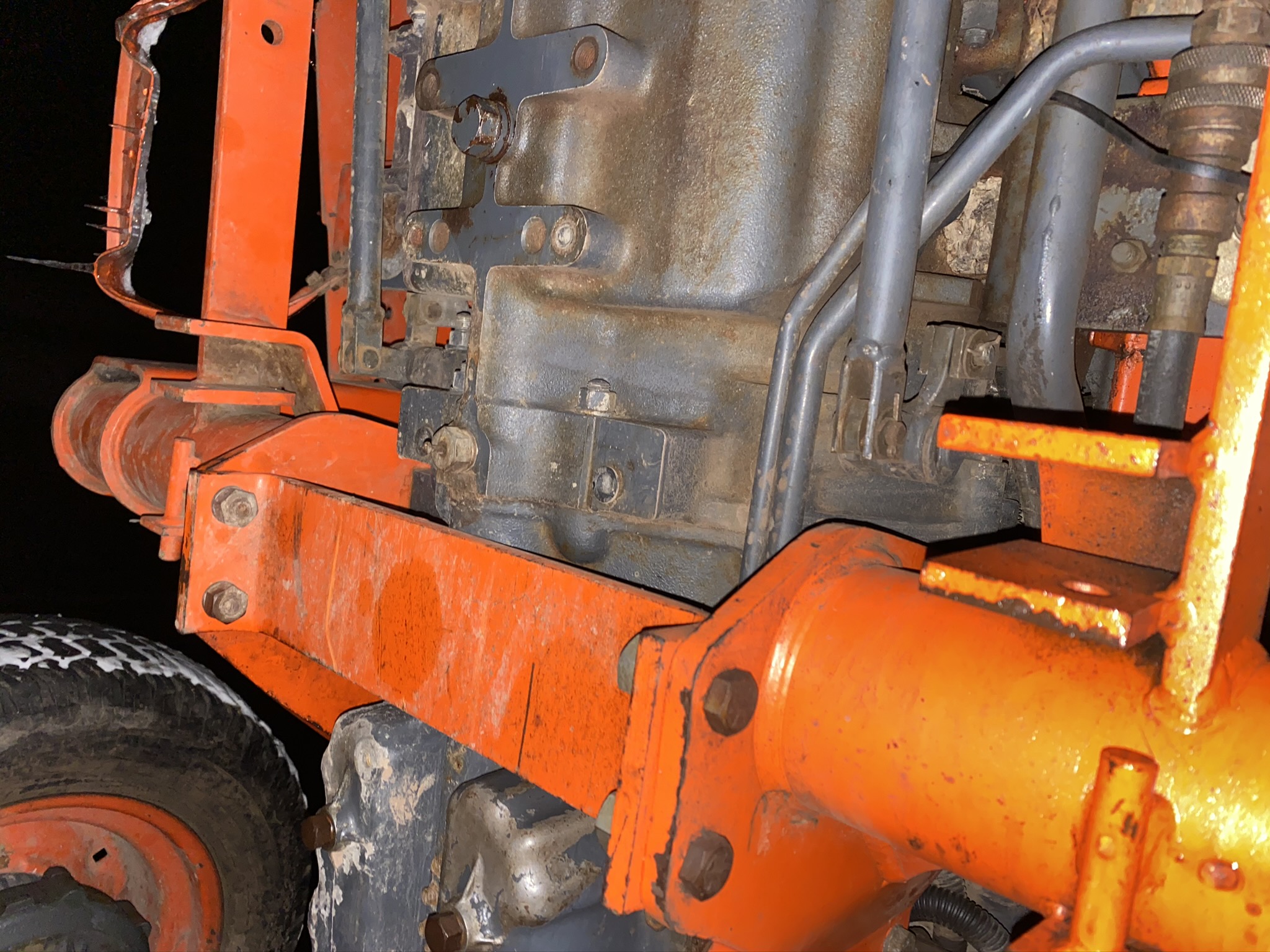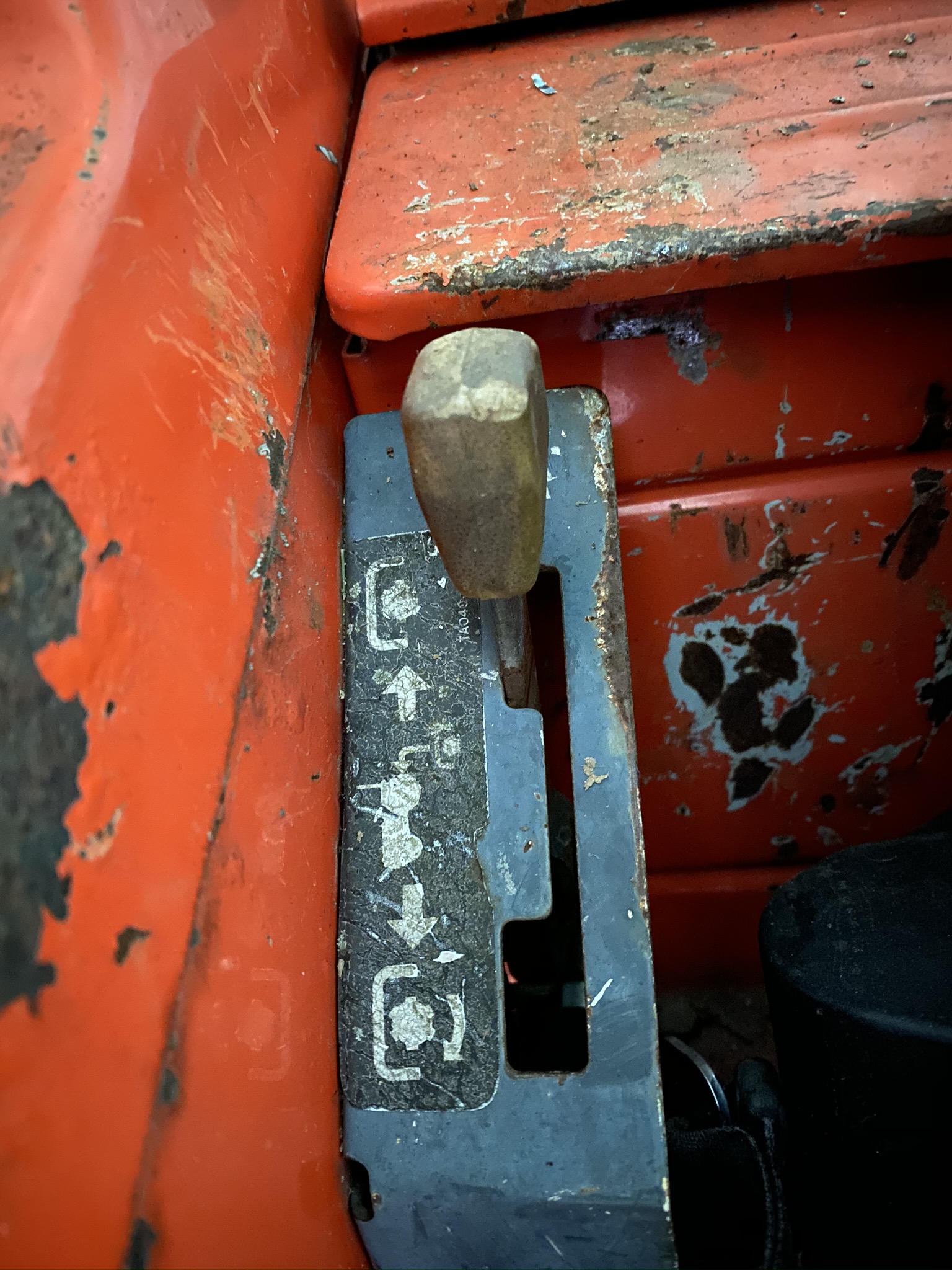 This season (Summer), I painted both fenders (removed and blasted first), the right hand fender mounted selector panel, the seat frame assembly, the console cover parts, all 4 wheels, and the loader bucket, plus some sub-frame touch-up.