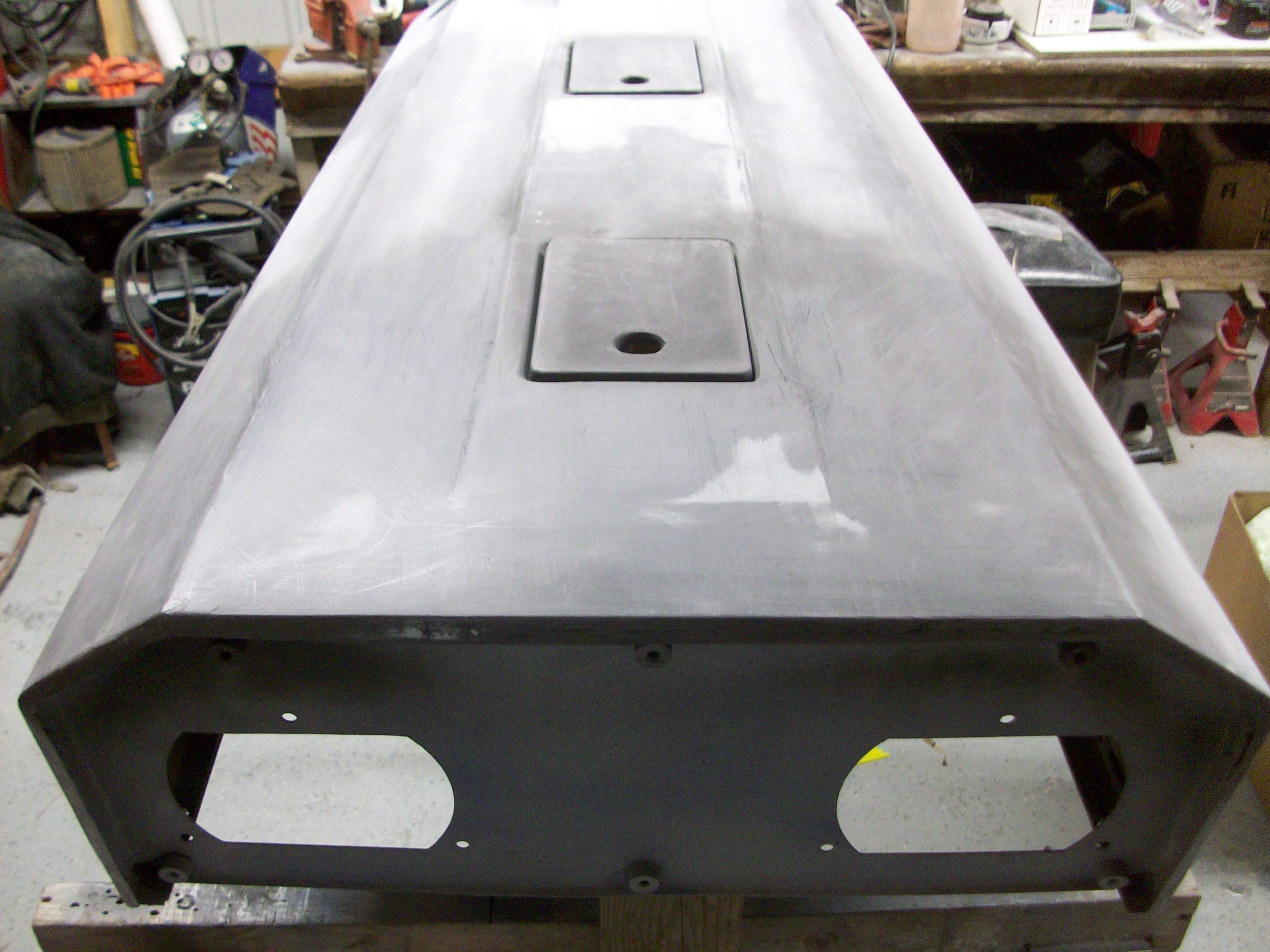 Here's an update on the body work progress-this a different view after the damage, the home made
