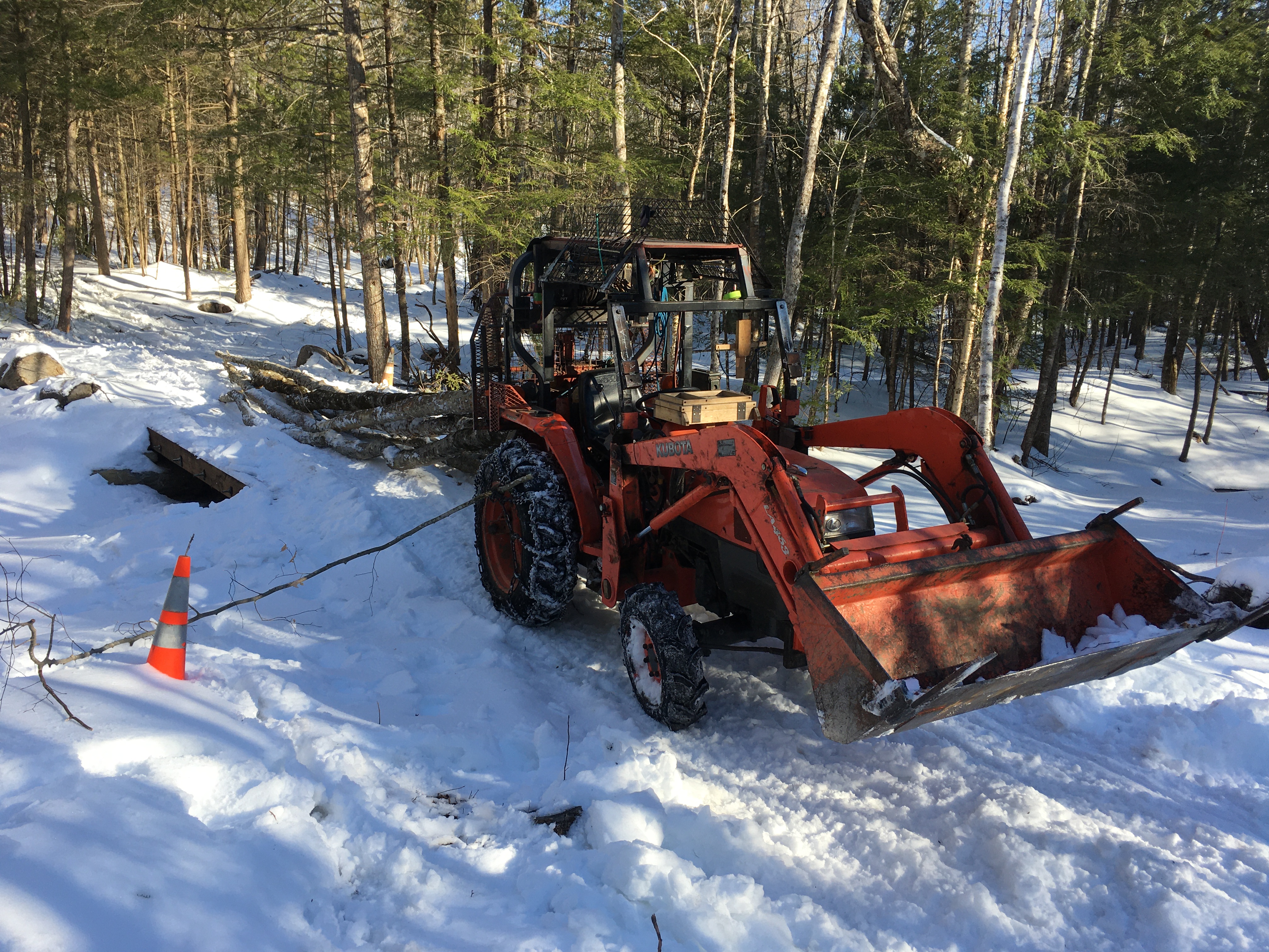 I was all over the place this weekend getting firewood thats been cut down since last summer, these trees broke my cable because for some strange reason the tops was frozen to the ground, so I used the loader to loosen tops, then hook back and drag down back and cut limbs off, while winching trees they just missed the 6x6.